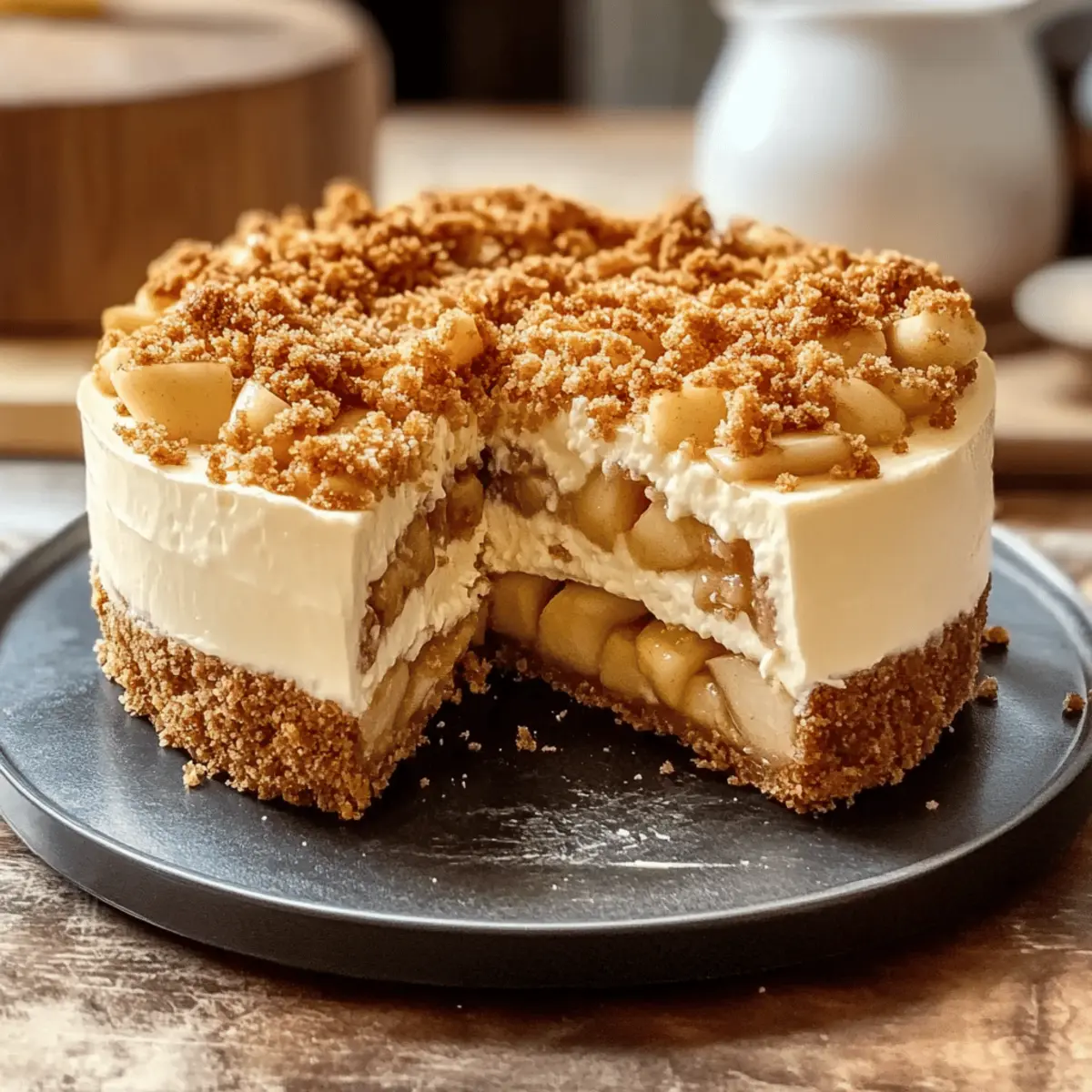 Experience the ultimate comfort with this Apple Crumble Cheesecake, blending creamy cheesecake, sweet apples, and a crunchy crumble.