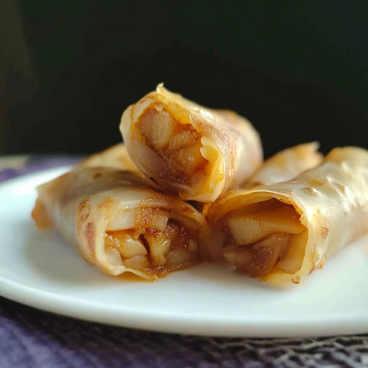 These Baked Apple Pie Rice Paper Rolls are excellent for meal prep enthusiasts! You can prepare the apple filling (mixing the sliced apples with brown sugar and cinnamon) up to 24 hours in advance; simply store it in an airtight container in the refrigerator to keep it fresh. Additionally, you can soak the rice paper sheets and assemble the rolls up to 3 hours ahead of time; just cover them with a damp cloth to prevent drying out. When you’re ready to bake, brush the assembled rolls with oil and pop them in the oven—this way, you’ll have delicious, warm rolls with minimal effort for dessert, perfect for busy weeknights!