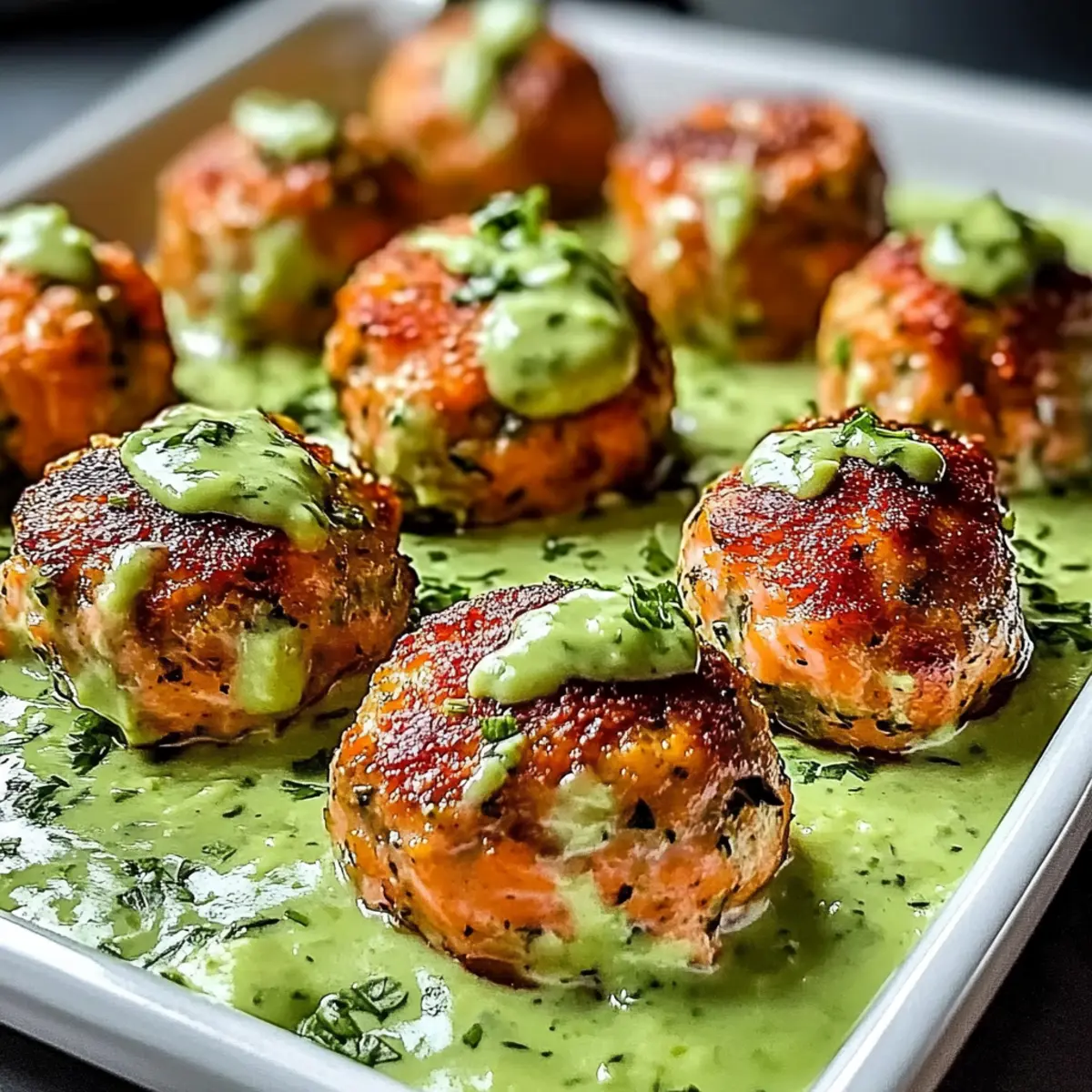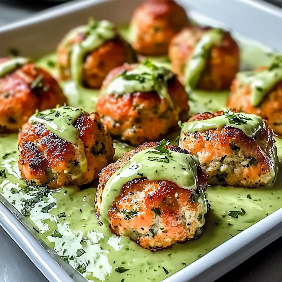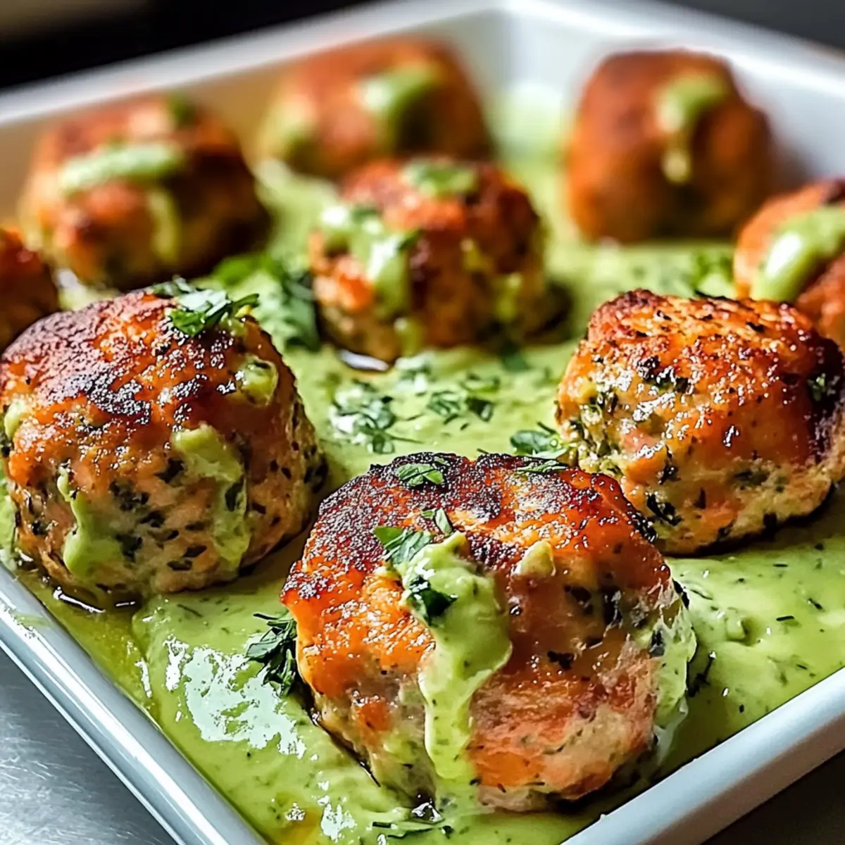 Baked Salmon Meatballs with Creamy Avocado Sauce Bliss