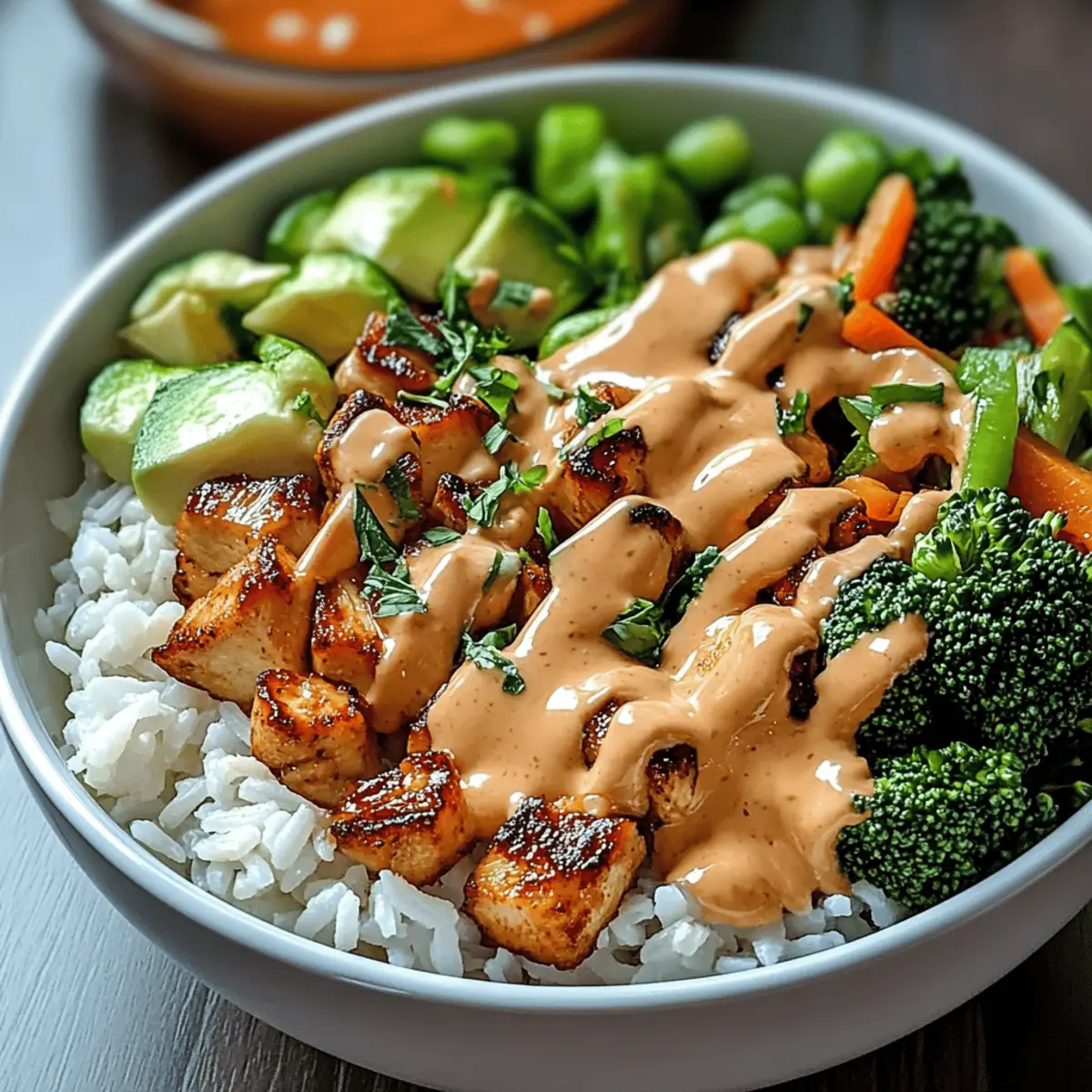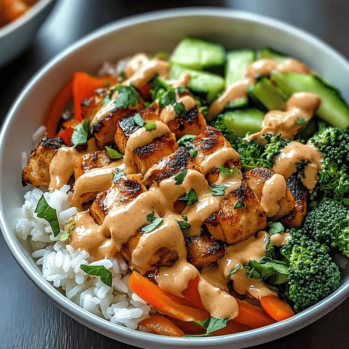 Experience the savory delight of the Bang Bang Chicken Bowl, a quick and customizable meal bursting with flavor.