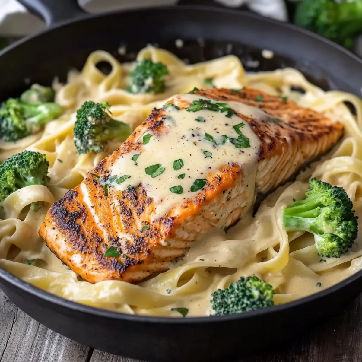 Savor the Flavor: Blackened Salmon and Broccoli Alfredo