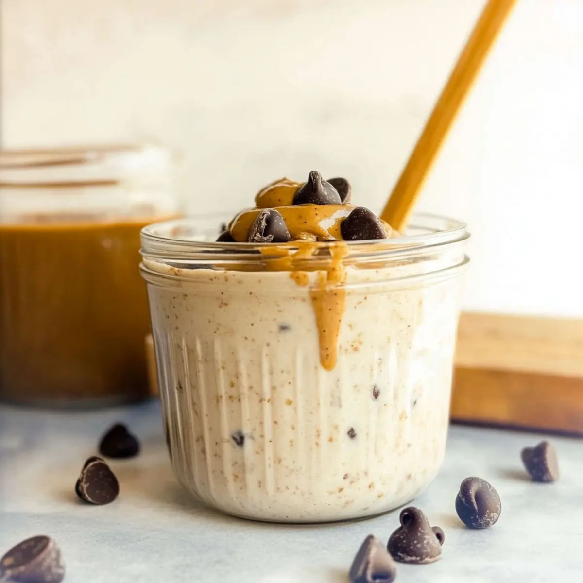 Now it’s time to customize your Blended Overnight Oats! If you like, sprinkle the tops with mini dark chocolate chips or swirl in a spoonful of creamy peanut butter. Feel free to get creative with other options like chopped nuts or dried fruit, adding a delicious twist to your breakfast and making it visually appealing.
