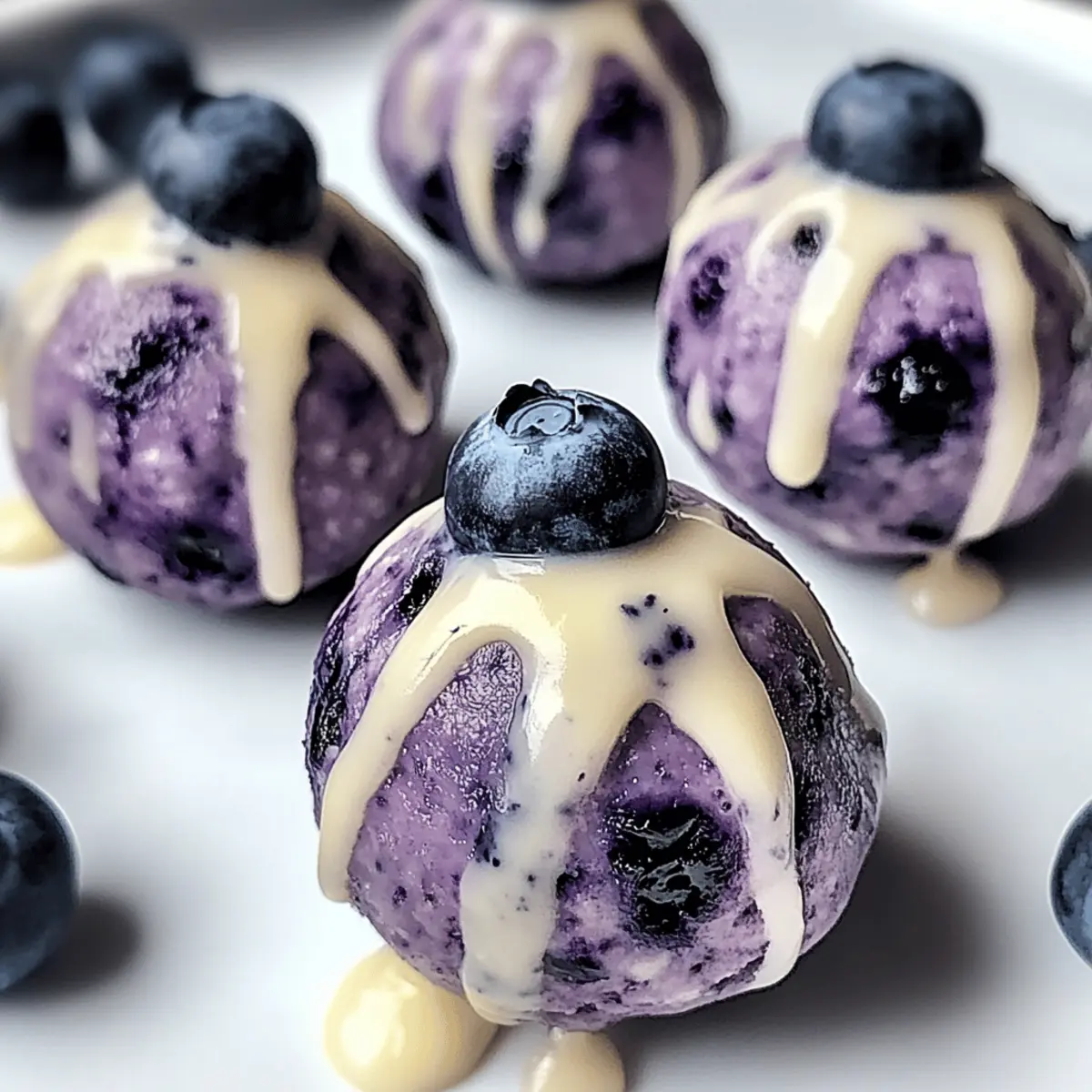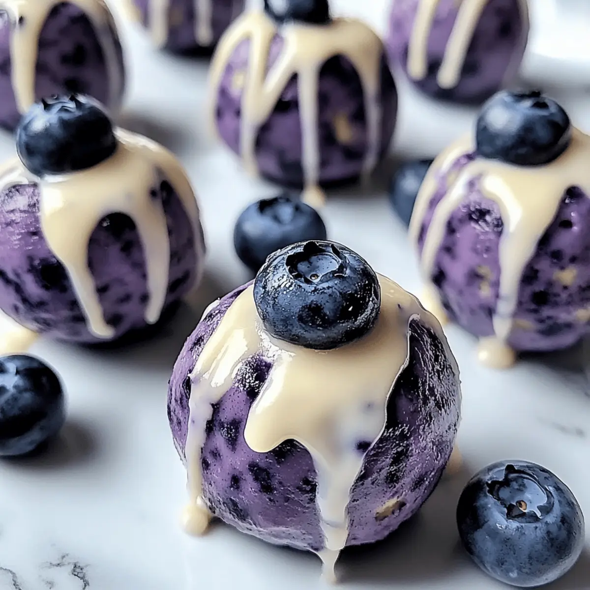 - Glaze and Serve: Drizzle the glaze over the bites and garnish with fresh blueberries.