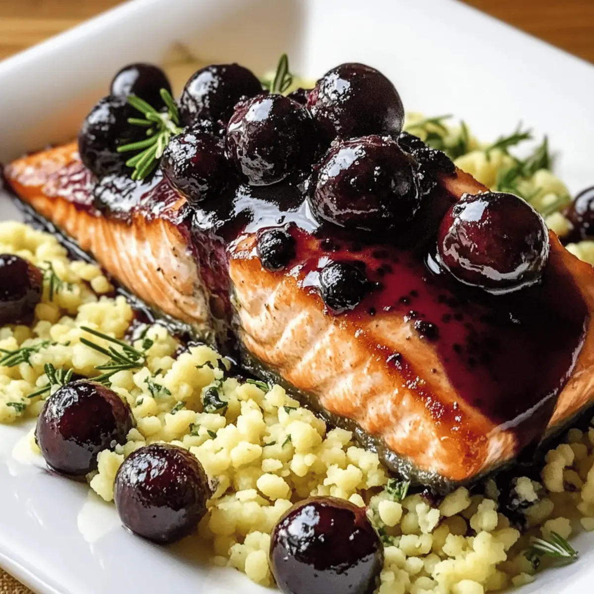 Blueberry Glazed Salmon with Lemon Herb Couscous Delight