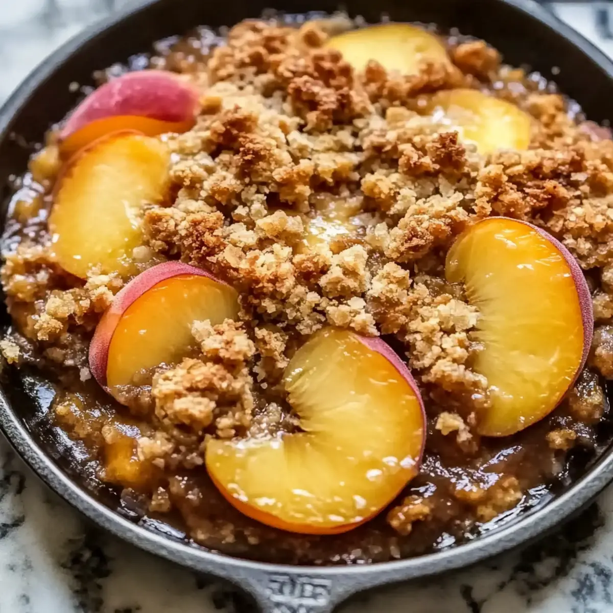Creamy and crunchy: The contrast of the soft peaches and the crunchy oat topping makes every mouthful a delightful experience.