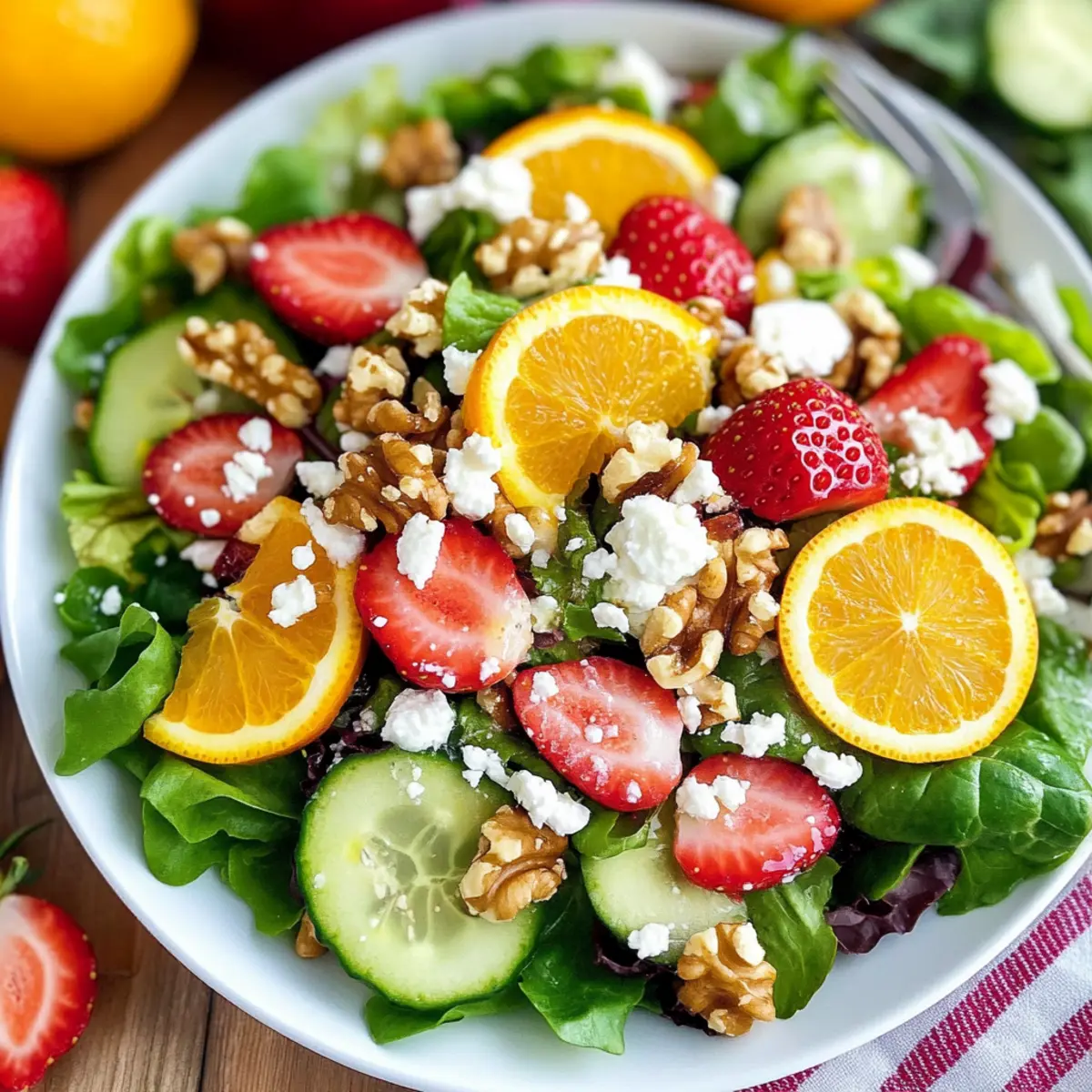 Fresh Ingredients: The Bright Spring Salad showcases the vibrant flavors of the season with crisp greens, sweet strawberries, and juicy oranges that create an irresistible combination.