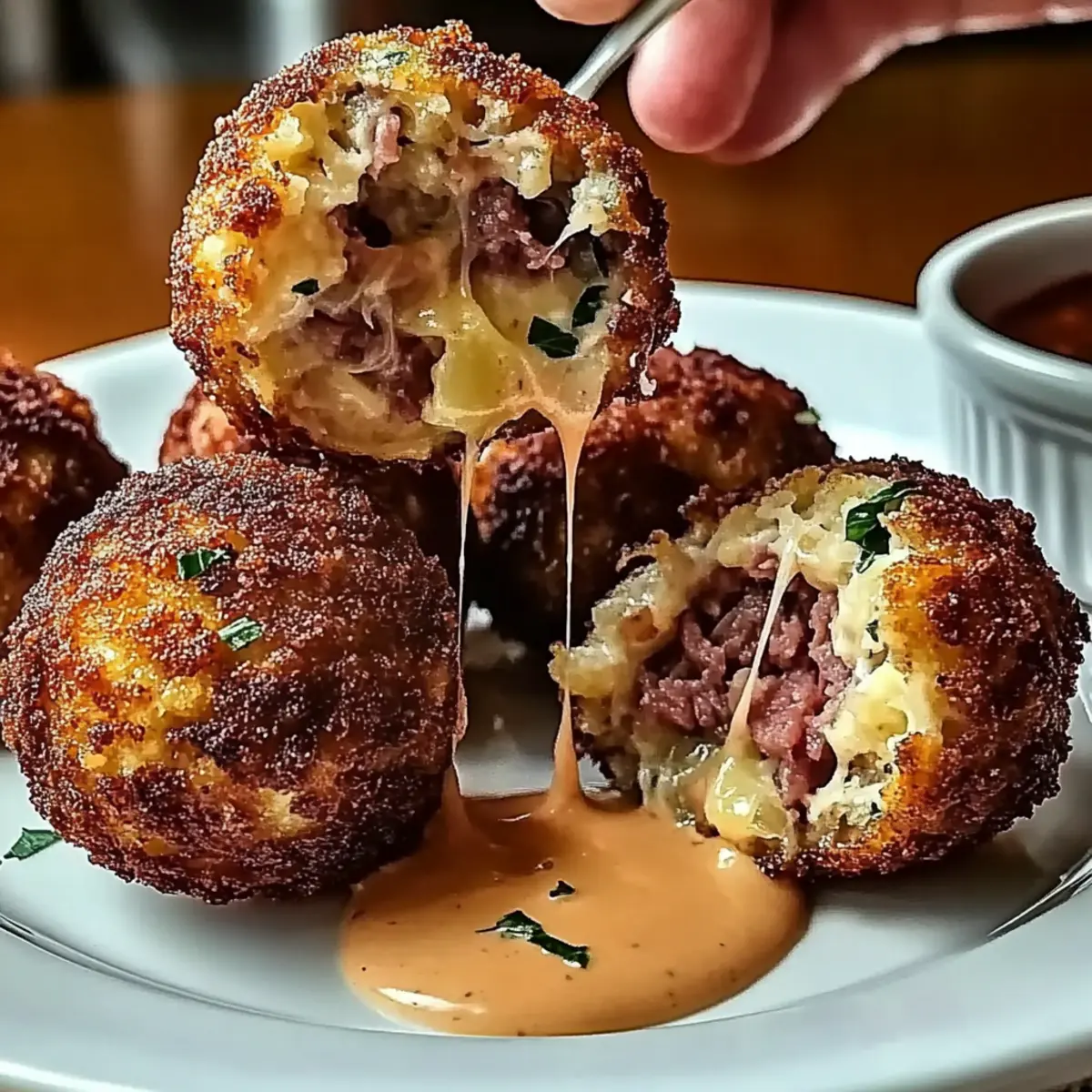 Crispy Reuben Balls with Spicy Thousand Island Dipping Sauce