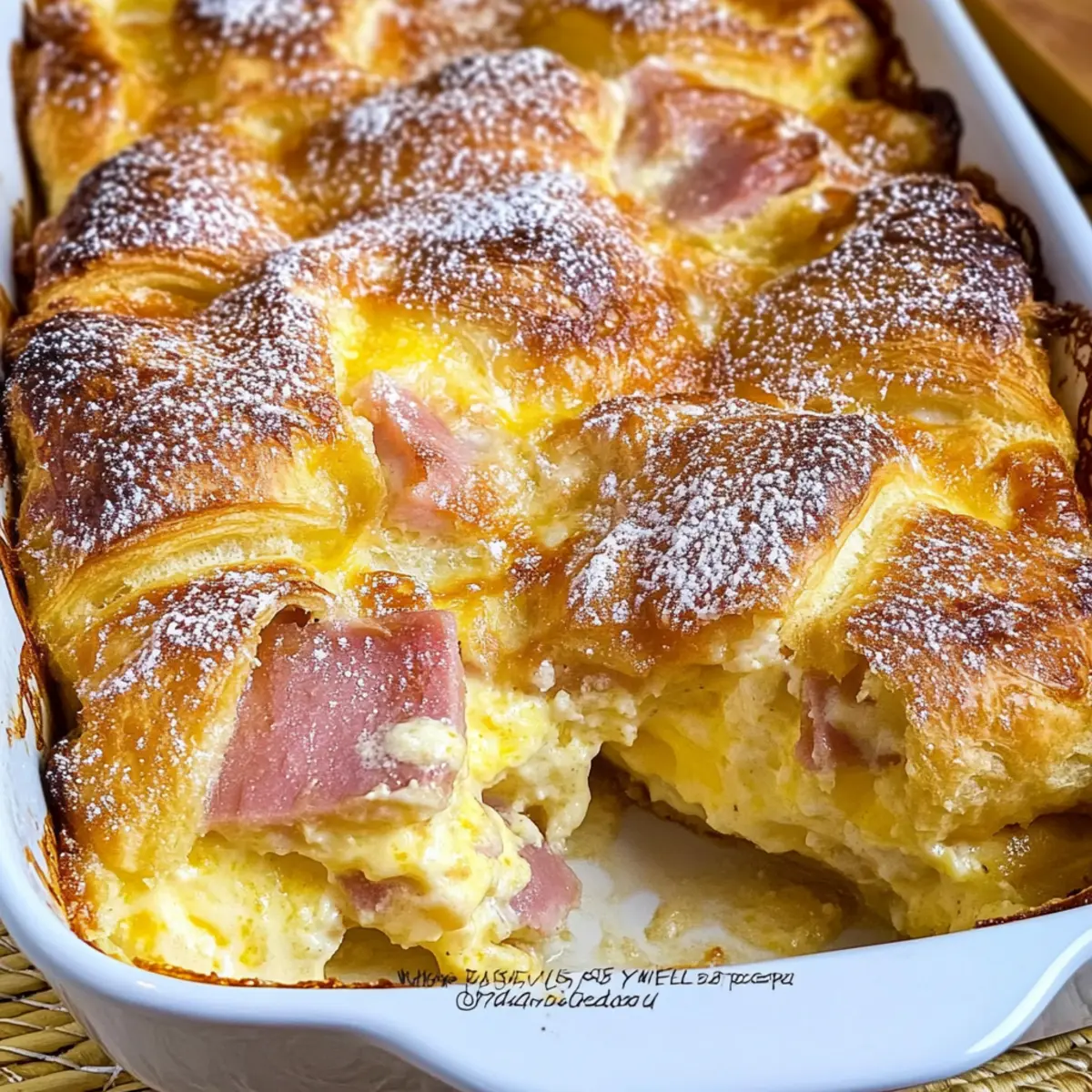 Irresistible Ham and Cheese Croissant Breakfast Casserole Delight