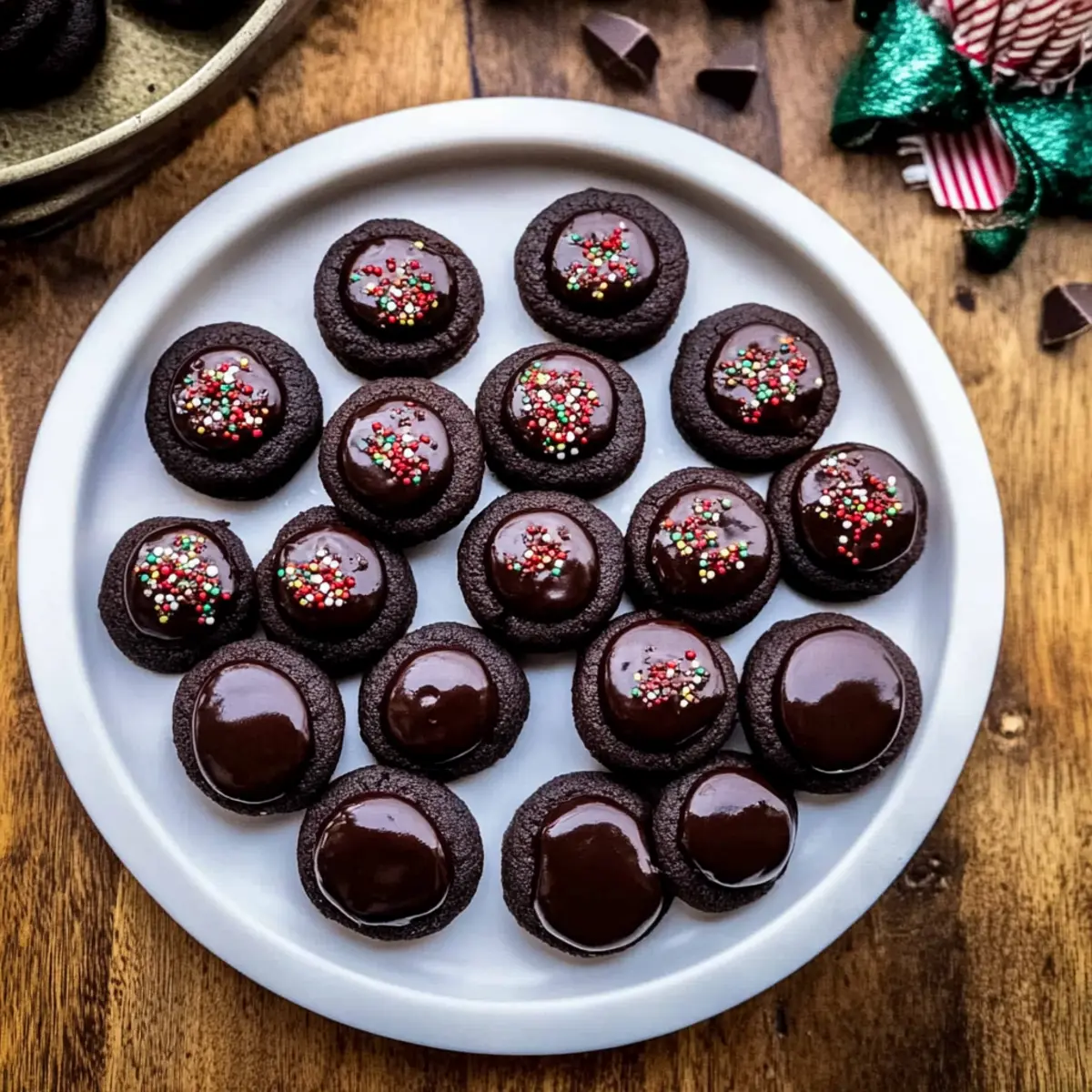 Chewy Chocolate Thumbprint Cookies with Velvety Ganache