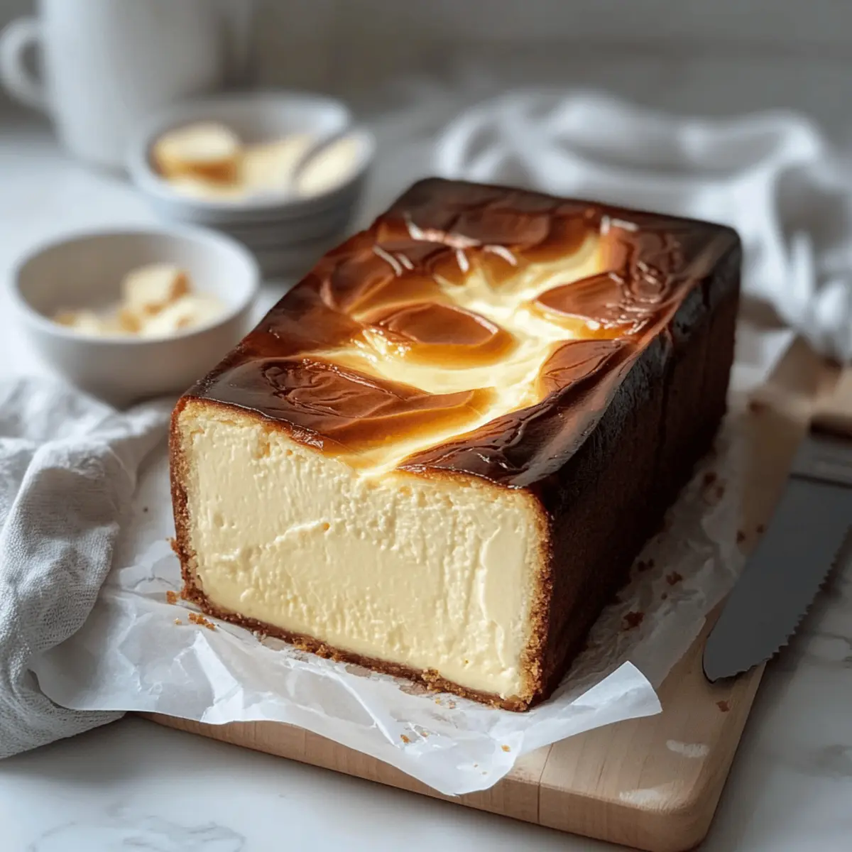 Perfectly Creamy Burnt Basque Cheesecake in a Loaf Pan