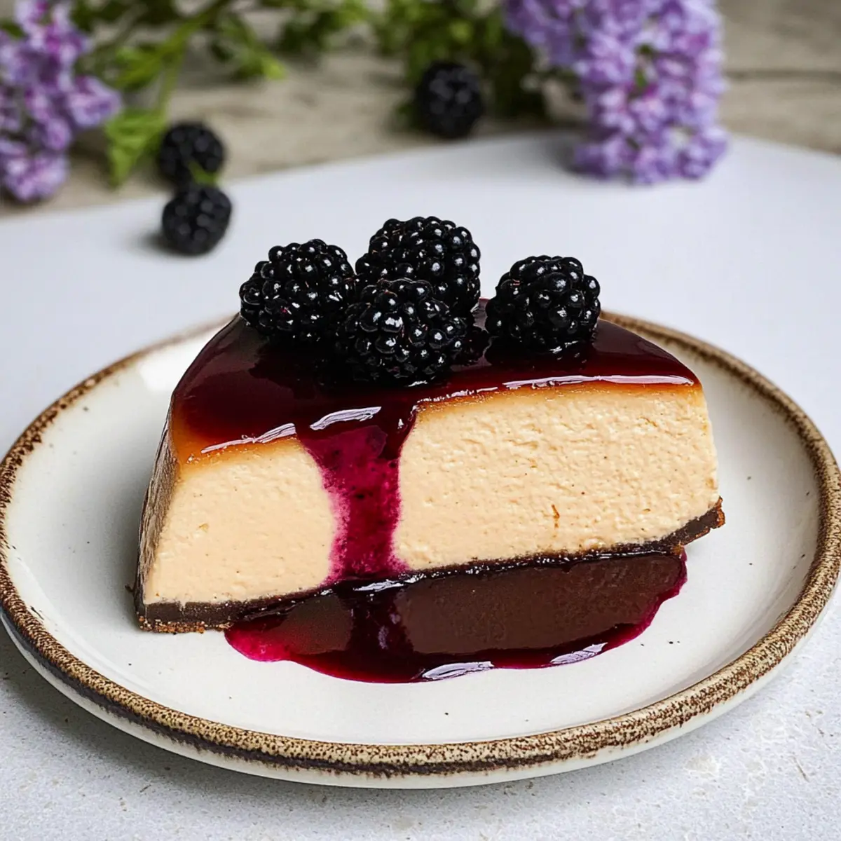 Indulge in London Fog Basque Cheesecake with Blackberry Sauce