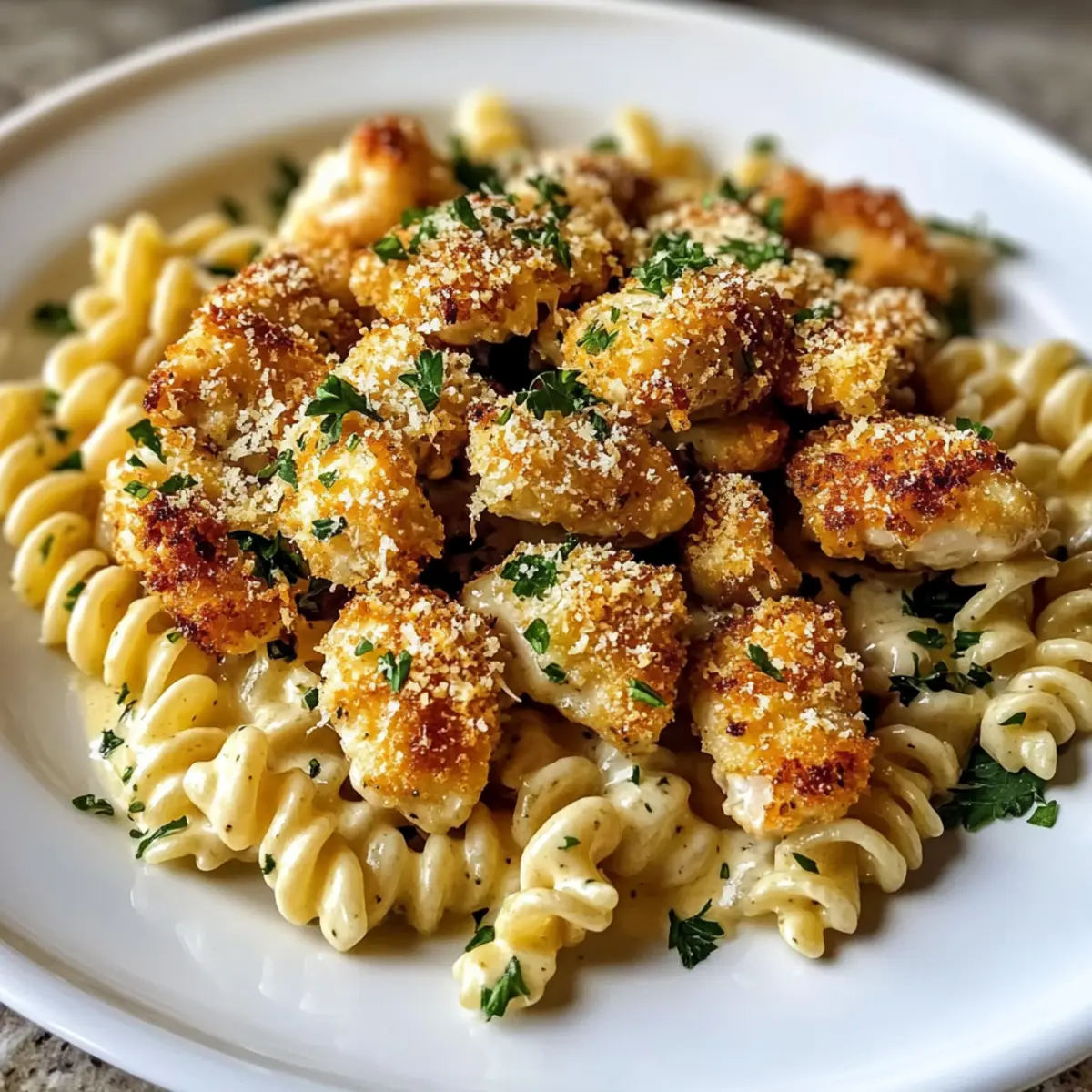 Garlic Parmesan Chicken Bites with Creamy Rotini Bliss