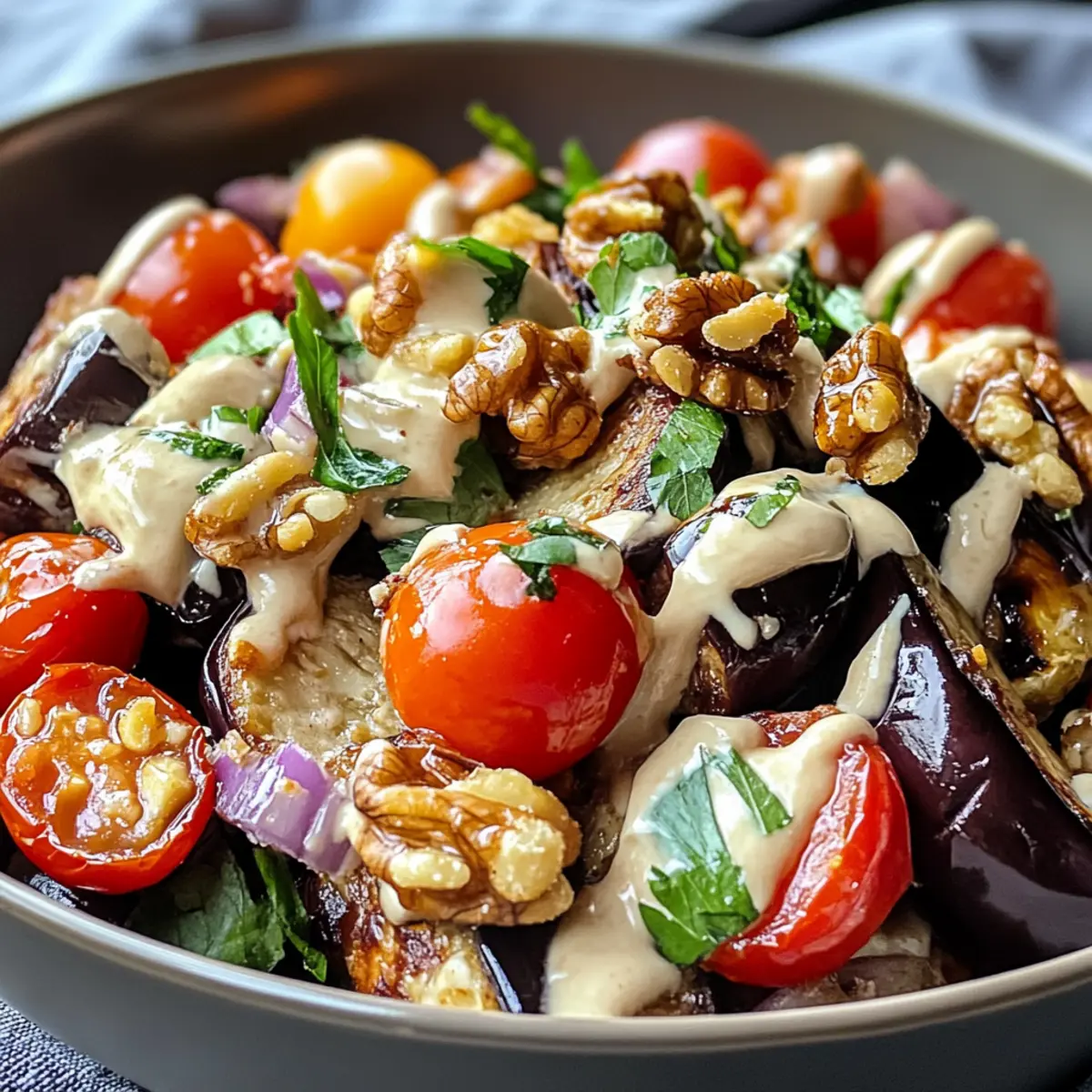 Roasted Eggplant Moroccan Salad with Tahini Drizzle Bliss