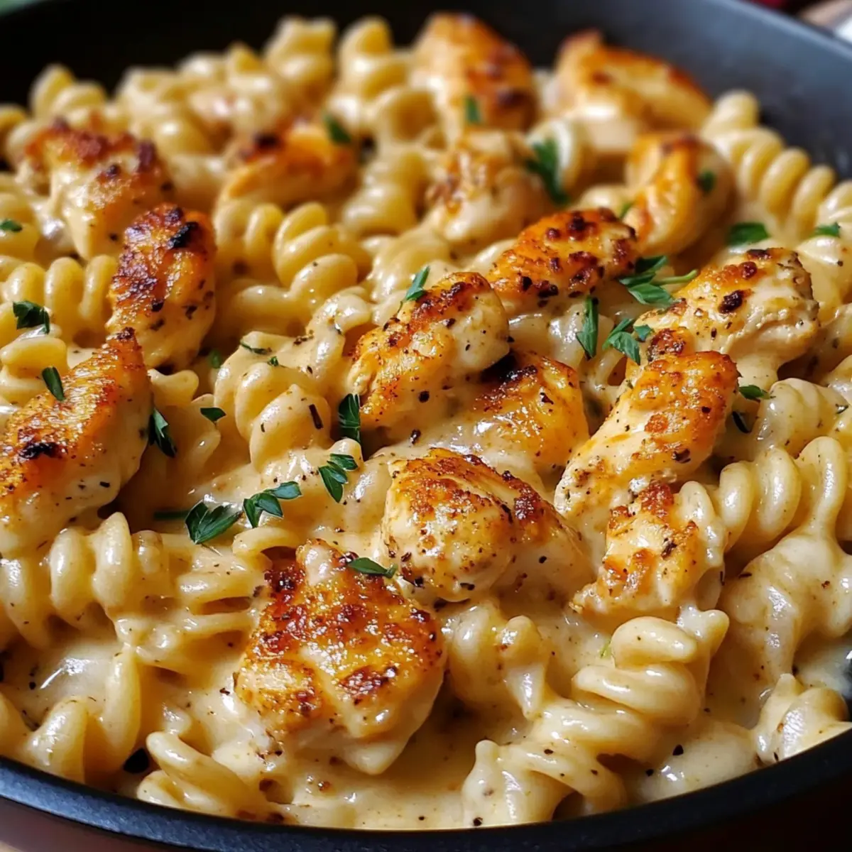 - Once the sauce is smooth, return the chicken and cooked rotini to the skillet, tossing gently to coat. Simmer for an additional 2-3 minutes to meld flavors.