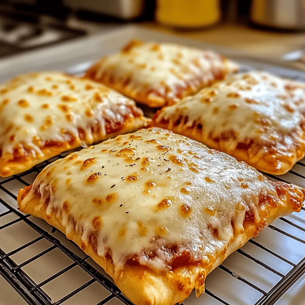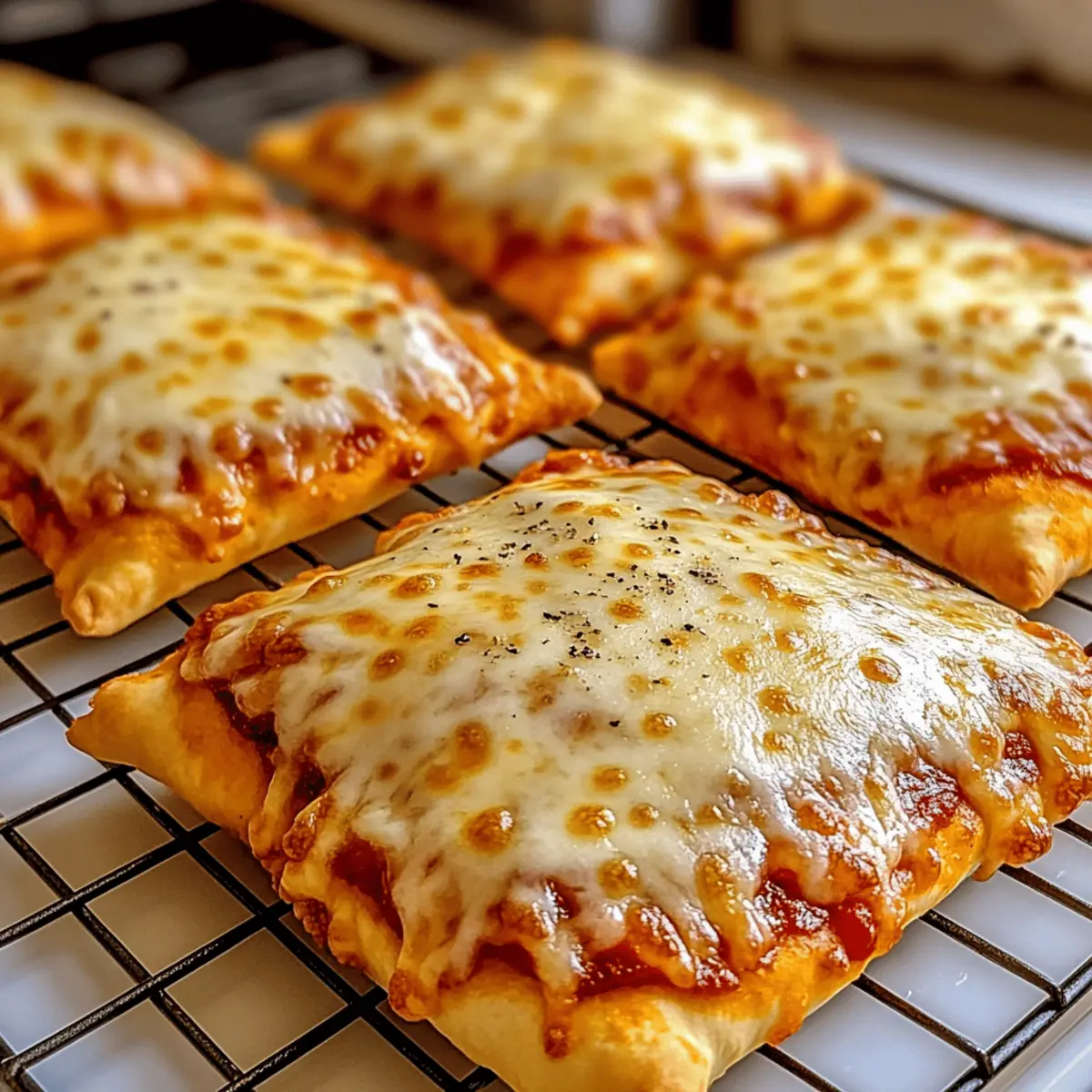 Once golden and bubbling, remove the Cheesy Pizza Pockets from the oven and let them cool slightly on a wire rack for about 5 minutes. This chill time allows the cheese to set a bit and makes them easier to handle. Serve warm with dipping sauces and watch as everyone enjoys this delightful snack!