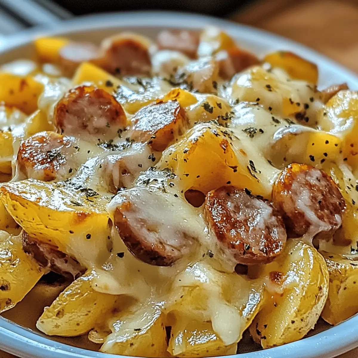 Comforting flavors come alive in each bite, merging the crispy texture of golden potatoes with the smoky goodness of sausage. One-pan wonders like this keep cleanup easy while delivering maximum taste. Customizable at its core, you can switch up the sausage or add in colorful veggies to keep things fresh. Cheesy goodness melts seamlessly, creating a warm embrace that everyone loves. Perfect for busy weeknights, this dish will soon become a family favorite, much like my Cheesy Garlic Chicken or Buffalo Chicken Mac. Give it a try for a meal that warms the heart!