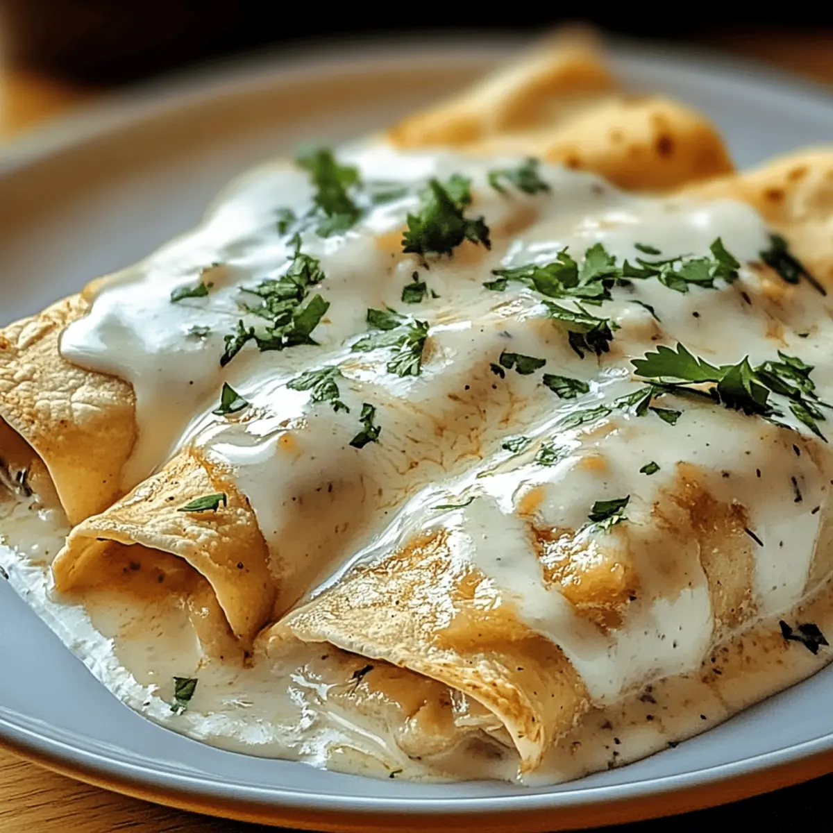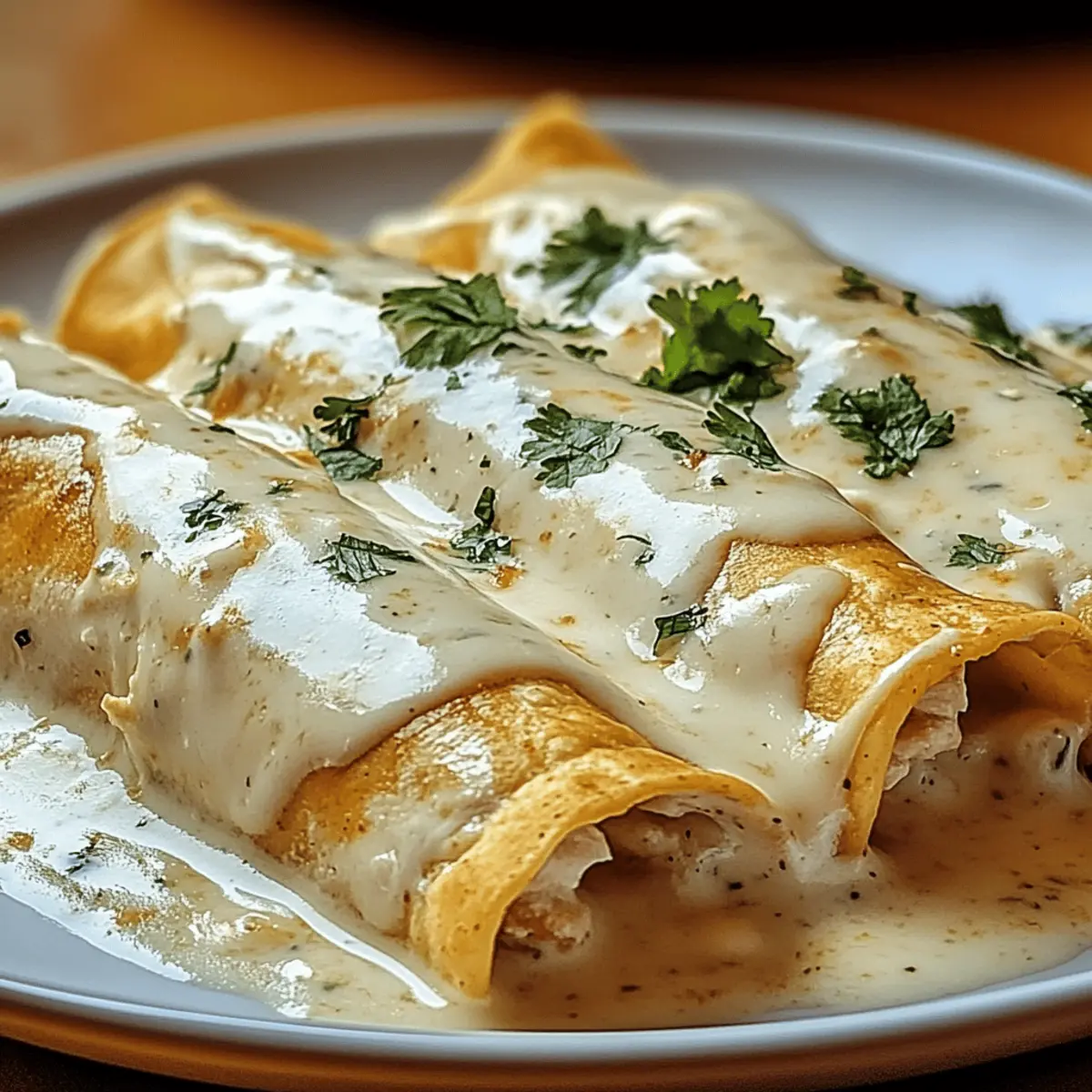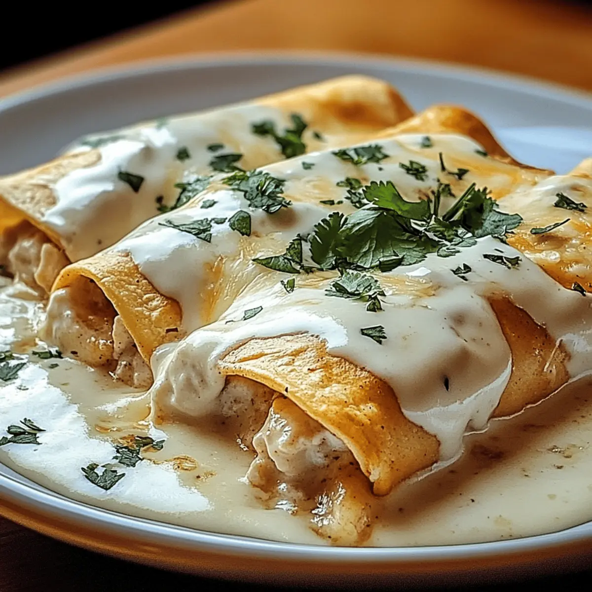 Comforting, creamy goodness: These Chicken Enchiladas with Sour Cream White Sauce bring ultimate satisfaction to every bite with their rich, velvety sauce.