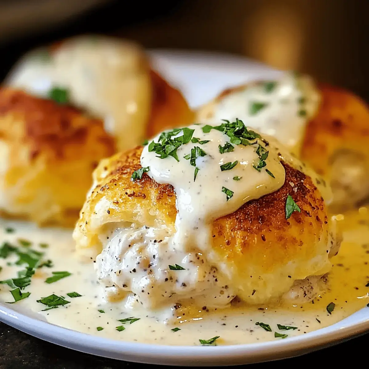 Enjoy heartwarming Chicken Pillows with Creamy Parmesan Sauce—perfect for family dinners and busy weeknights.