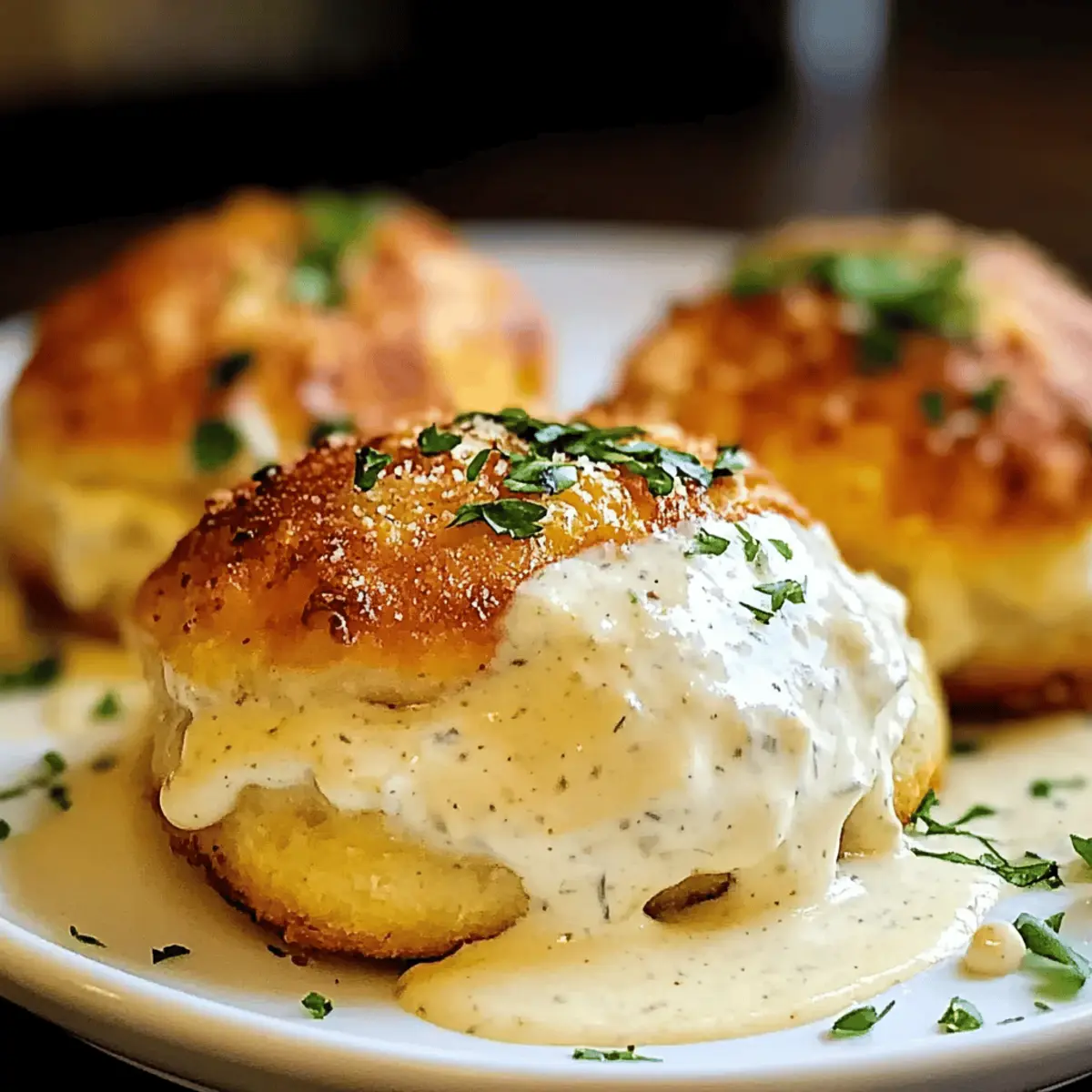 Comforting and Easy: With just a handful of simple ingredients, this recipe is perfect for both novice cooks and seasoned chefs. Rich, Creamy Sauce: The luscious Parmesan sauce elevates each bite, creating a delightful creaminess that marries beautifully with the flaky pastry. Crowd-Pleasing Appeal: These chicken pillows are a guaranteed hit at family dinners or gatherings, bringing everyone together around the table. Versatile Options: Feel free to substitute chicken with turkey or vegetables for a customized twist. Quick Prep: Whip these up in no time, making them ideal for busy weeknights. Embrace the cozy comfort of these Chicken Pillows with Creamy Parmesan Sauce, and consider pairing them with a fresh salad or your favorite seasonal vegetables for a complete meal.