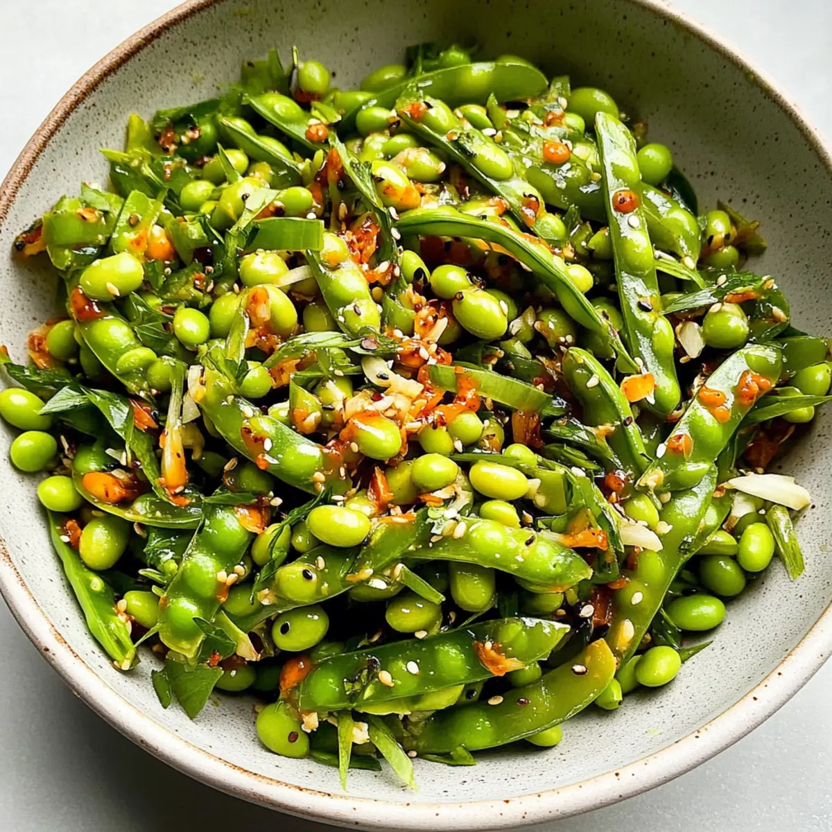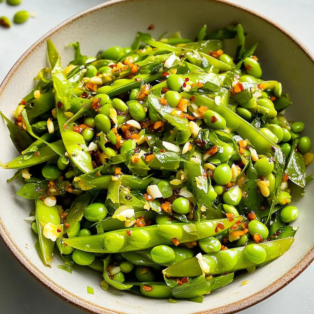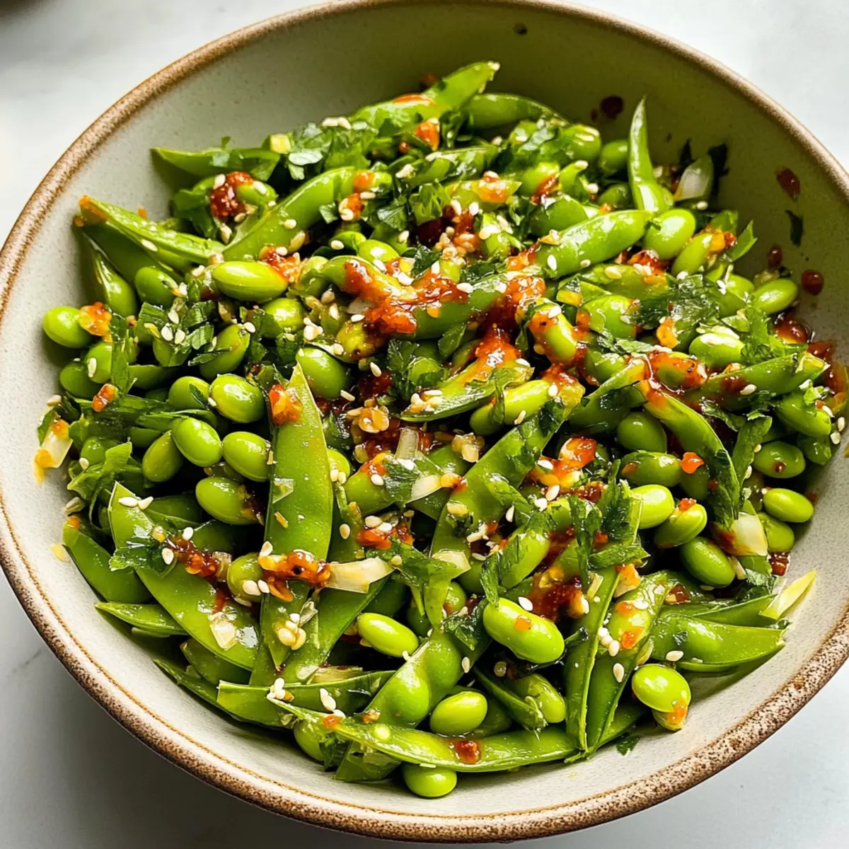 Vibrant Ingredients: This Chili Crisp Snap Pea Salad is a celebration of fresh produce, boasting bright snap peas and crisp edamame that invigorate your palate.
