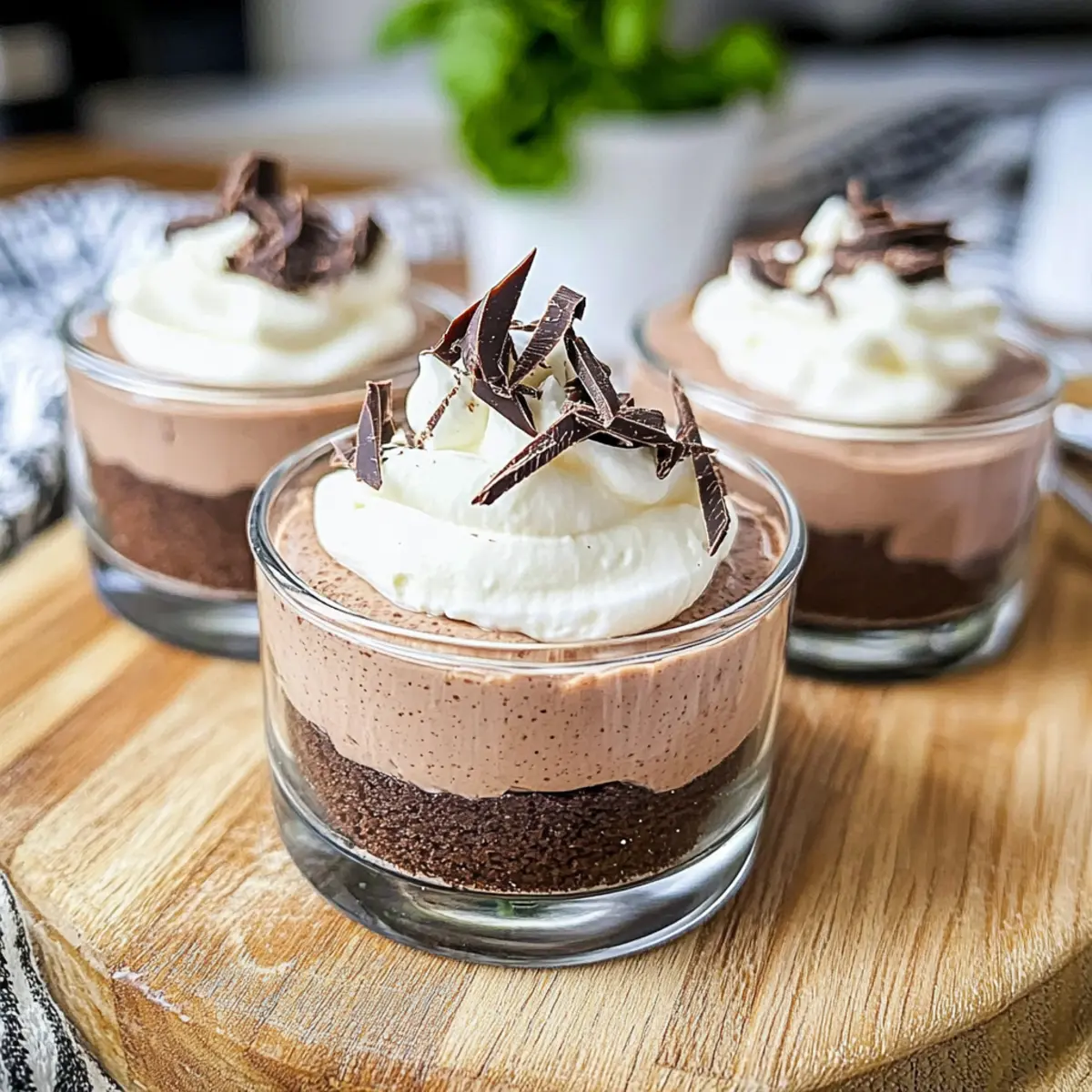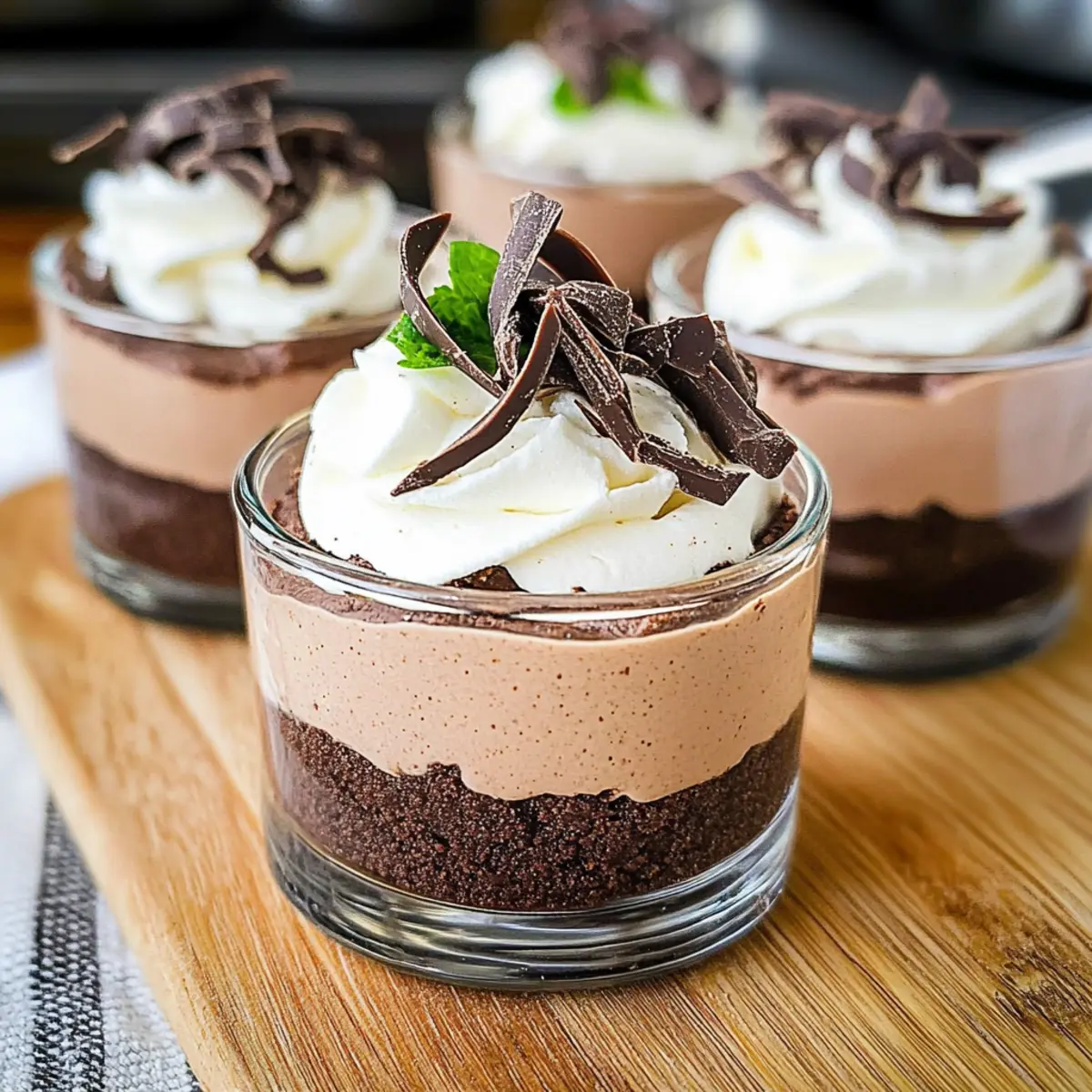 - Finely crush the chocolate creme sandwich cookies in a food processor until resembling fine crumbs. Melt the unsalted butter and combine it with the cookie crumbs. Divide among serving glasses and press firmly to create a crust. Chill for 15 minutes.