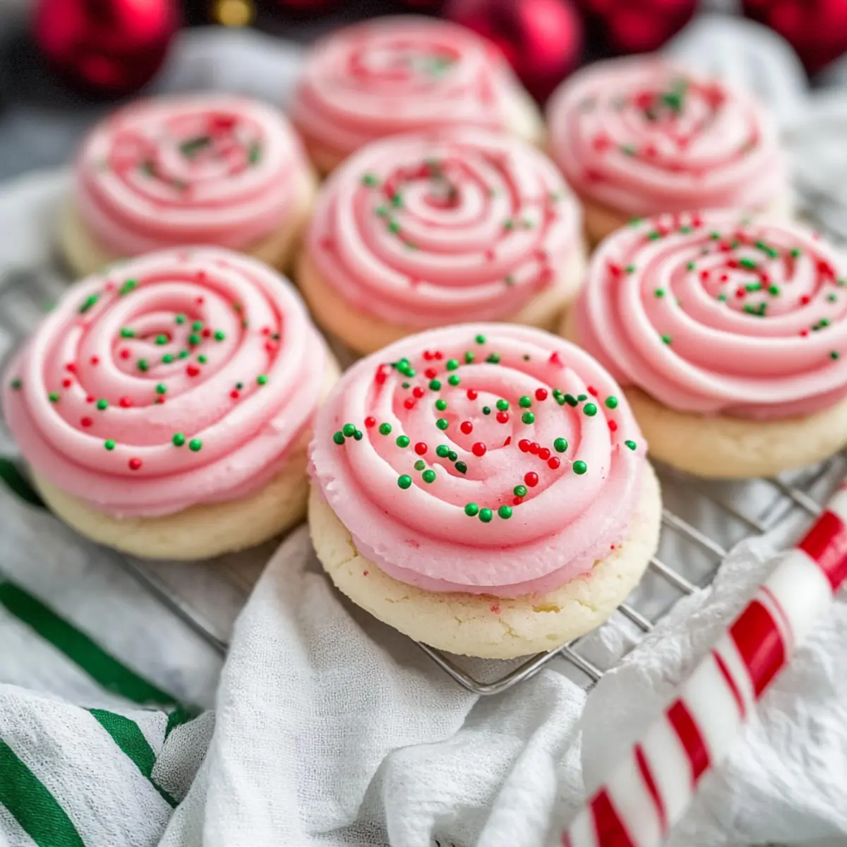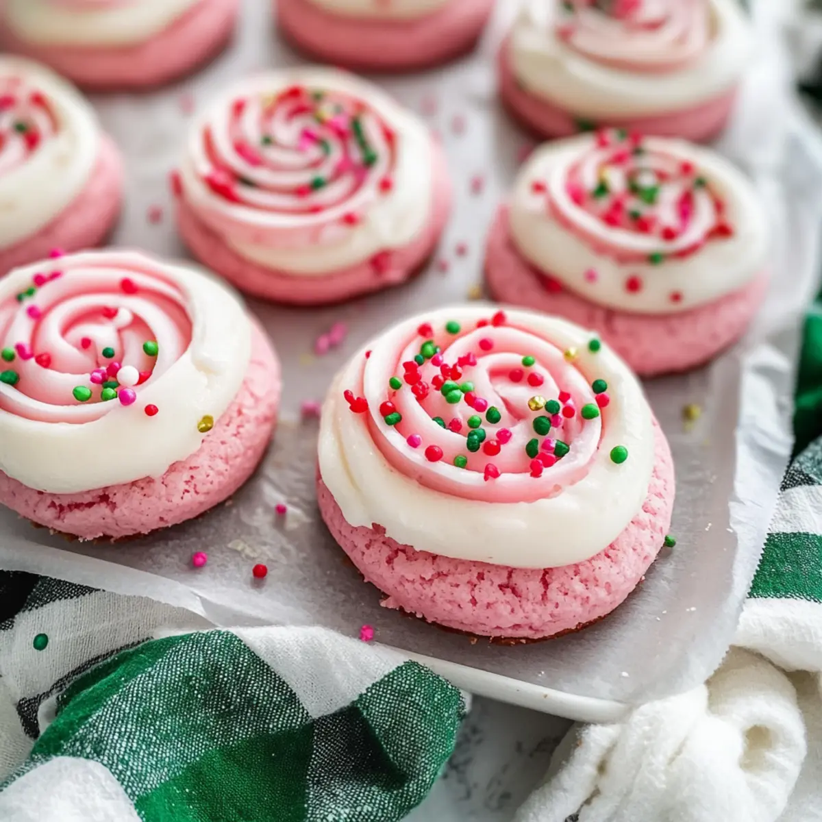 Once the cookies are cool, pipe the cream cheese frosting onto each cookie in a spiral pattern. Immediately sprinkle with Christmas sprinkles for that festive touch. This adds not only flavor but also visual appeal to your Christmas Pink Velvet Cookies, making them irresistible to all.