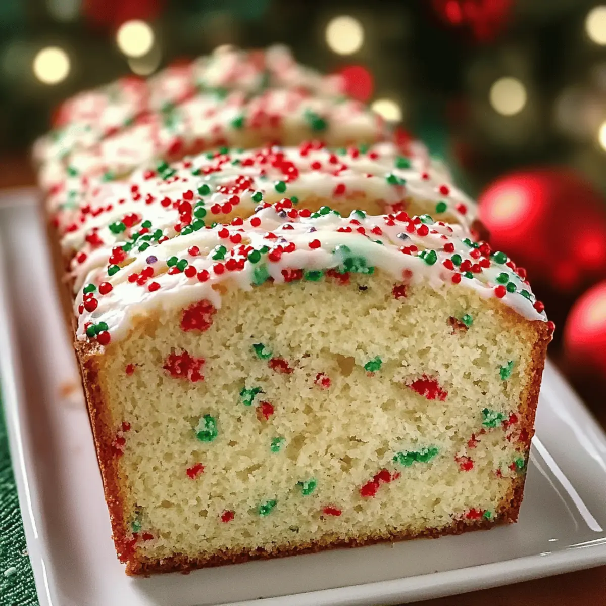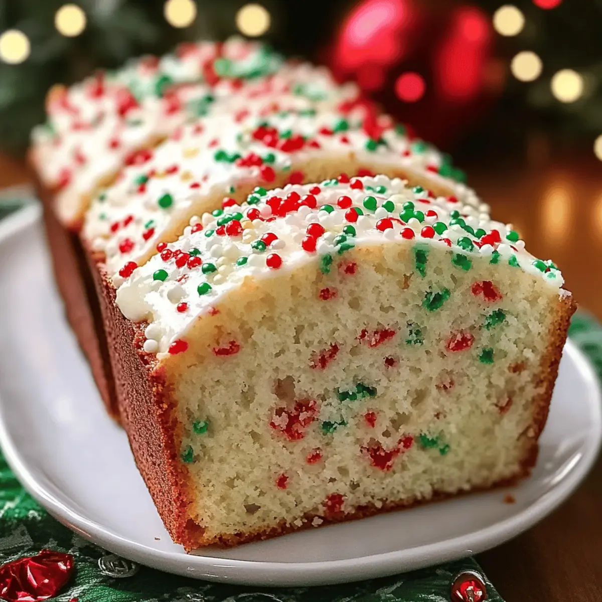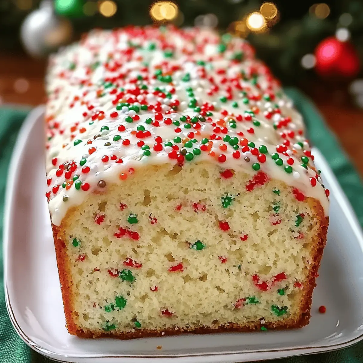 Festive, the colorful red and green sprinkles make this bread a standout at any holiday gathering. Moist texture that melts in your mouth, this loaf combines a tender crumb with rich flavor profiles. Easy to make, you don’t need to be a pro chef to whip this up—just mix, bake, and enjoy! Versatile enough to serve at brunch or as a charming gift, it pairs perfectly with hot cocoa or honey butter. Plus, it’s a delightful way to embrace the festive spirit and create lasting memories with loved ones this Christmas!