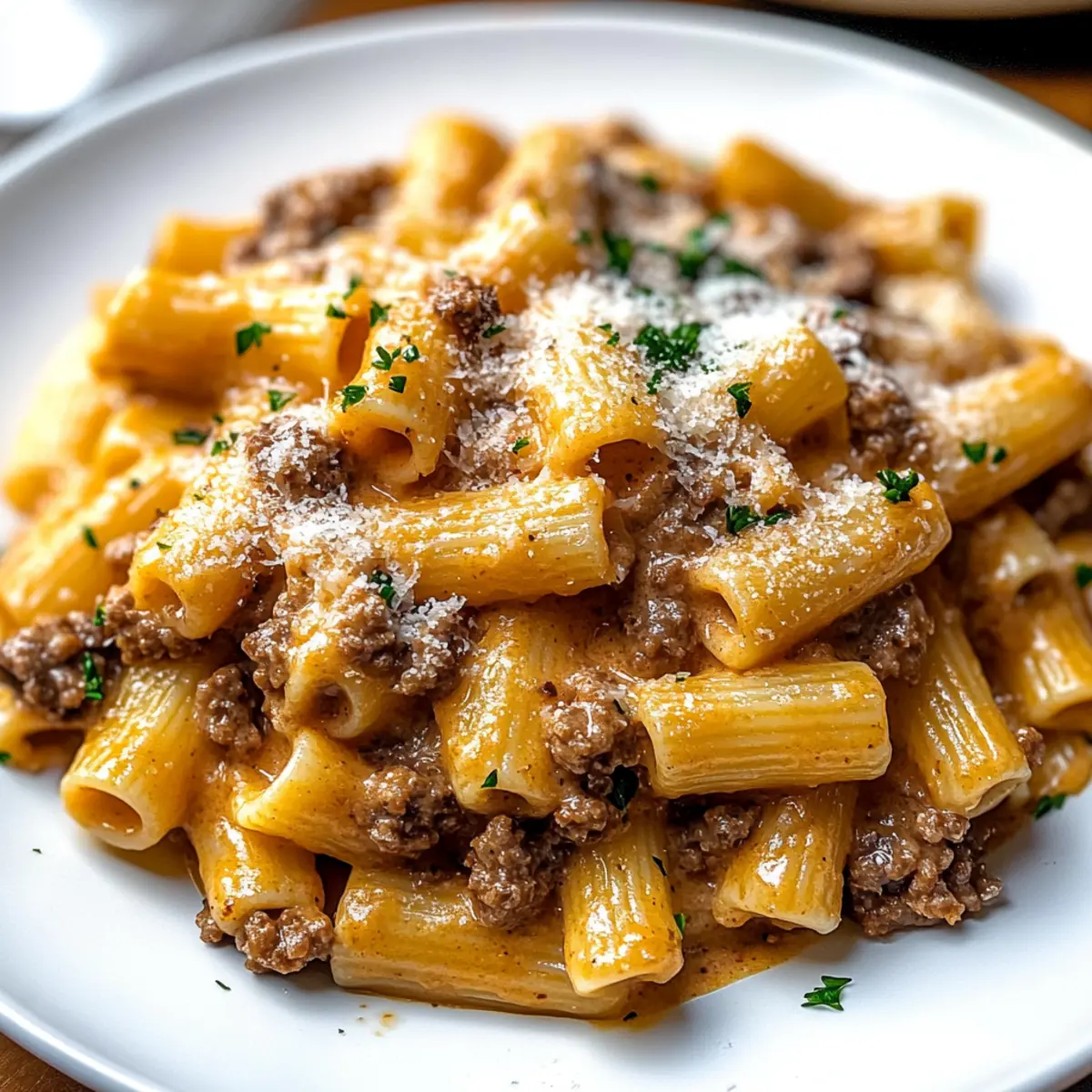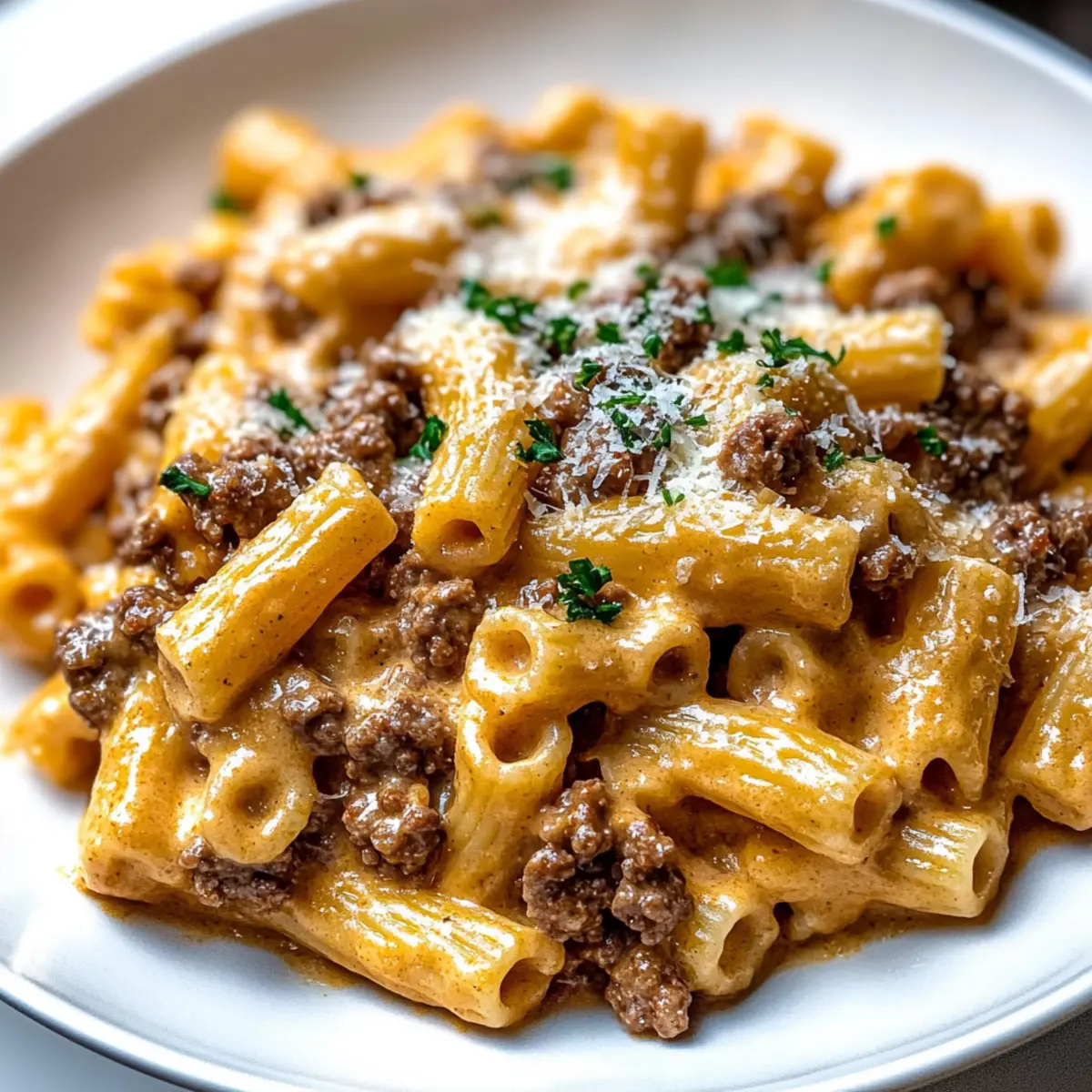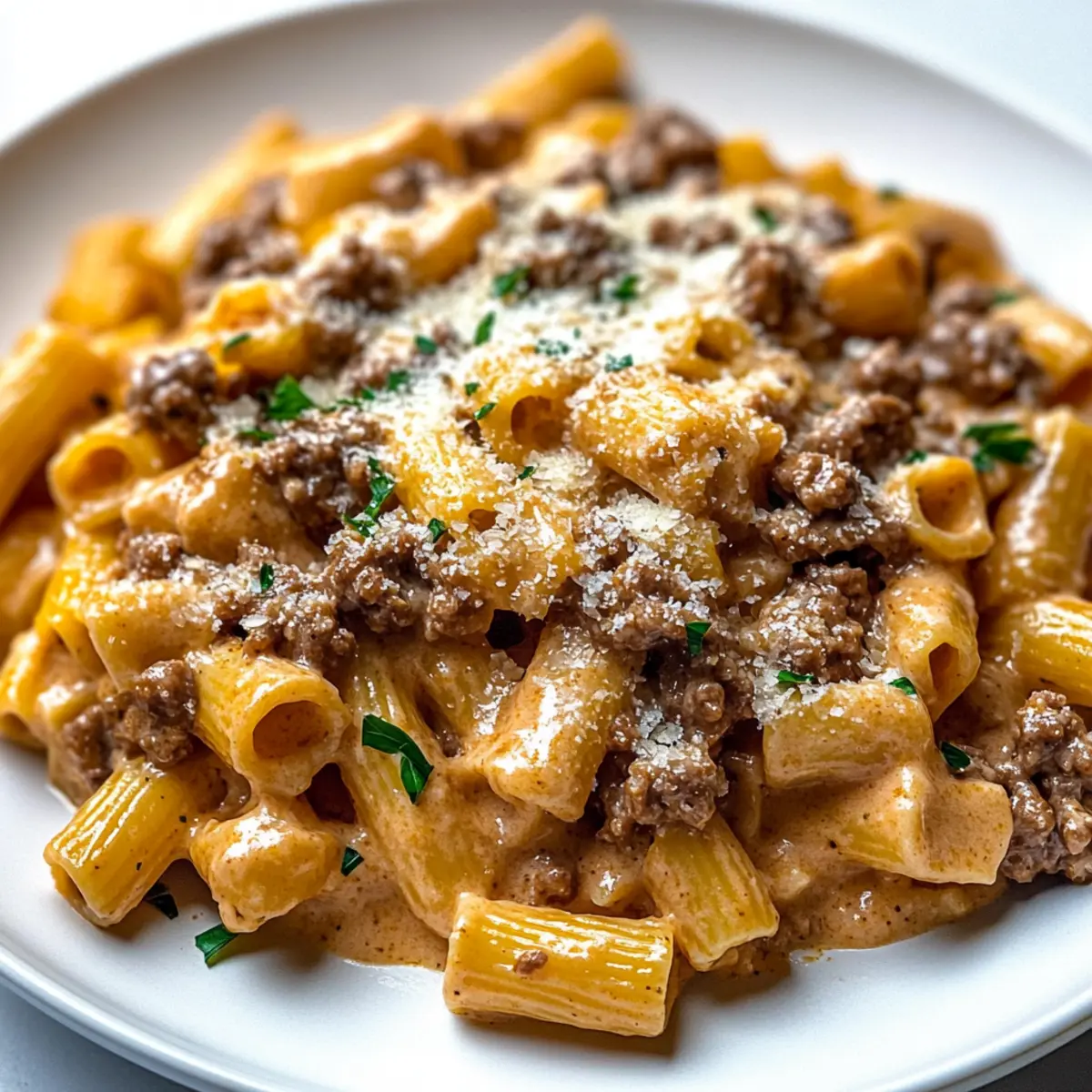 Once everything is well combined, fold in freshly grated Parmesan cheese, adjusting seasoning with more salt and pepper if needed. Garnish your creamy beef pasta with chopped parsley for a fresh touch. Serve hot and relish in the comforting flavors of this delightful dish!