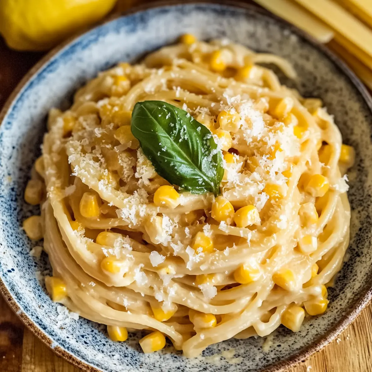 These Creamy Corn Pasta preparations are perfect for busy home cooks looking to save time without sacrificing flavor! You can sauté the onions, garlic, and corn up to 24 hours in advance; just let them cool before storing in an airtight container in the refrigerator. Additionally, the creamy sauce can be prepared and stored for up to 3 days. When ready to enjoy, simply reheat the sauce gently over low heat, mix it with freshly cooked pasta, and stir in the lemon juice and basil right before serving to maintain that vibrant flavor. This way, you’ll have your comforting meal ready in a flash, just as delicious as when freshly made!