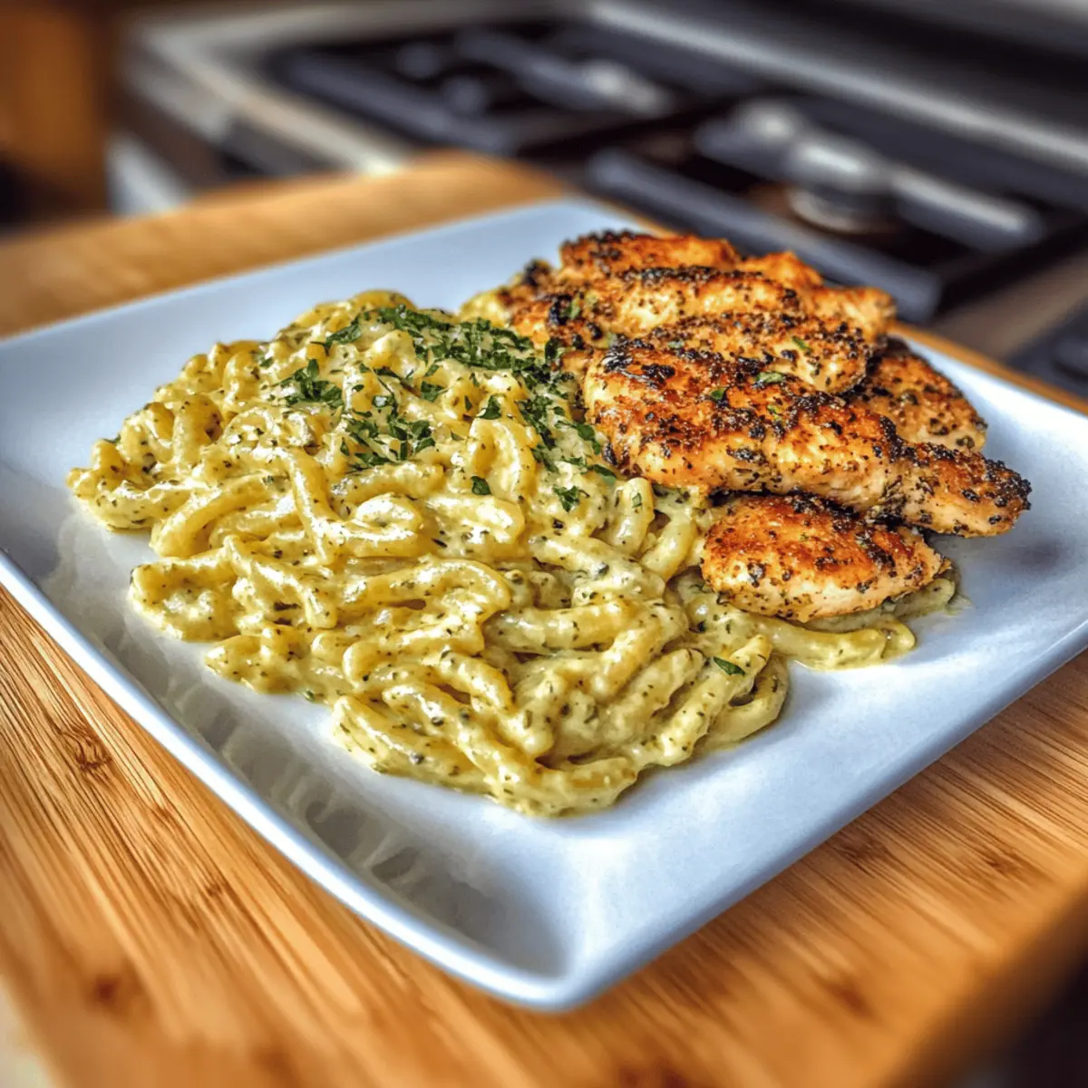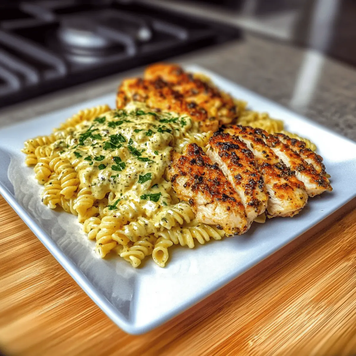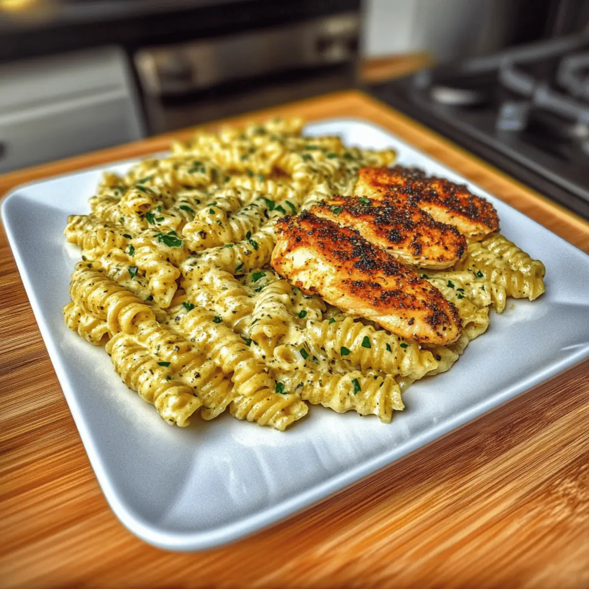 While the pasta cooks, pat the chicken breasts dry with a paper towel and season both sides generously with salt, black pepper, and half of the Italian seasoning. In a large skillet, melt 1 tablespoon of unsalted butter over medium-high heat. Add the chicken and sear it for 3–4 minutes on each side until it turns golden brown and reaches an internal temperature of 165°F. Once done, remove the chicken from the skillet and let it rest.