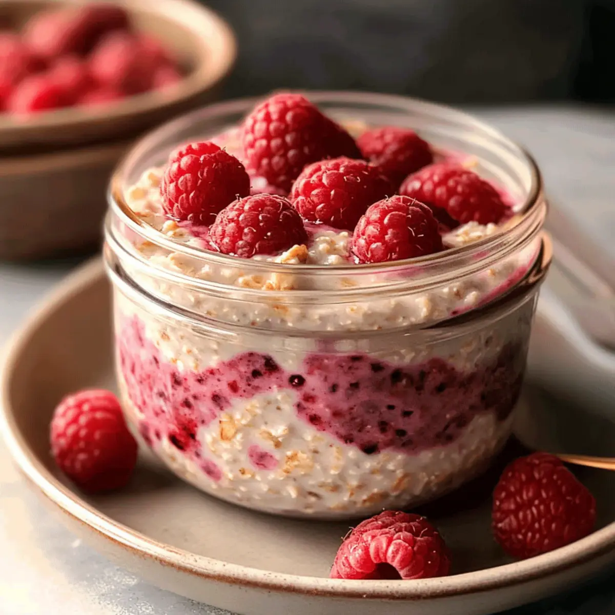 These Creamy Raspberry Overnight Oats are a dream for meal prep enthusiasts! You can prepare the base mixture (oats, milk, yogurt, maple syrup, and chia seeds) up to 3 days in advance, simply store it in airtight jars. For the best results, gently fold in the raspberries just before serving to maintain their fresh texture and prevent browning. When you’re ready for breakfast, just take a jar from the fridge, give it a quick stir if needed, and enjoy! This way, you’ll have a nutritious, ready-to-go breakfast waiting for you every busy morning, saving you precious time while still delivering delicious flavor.