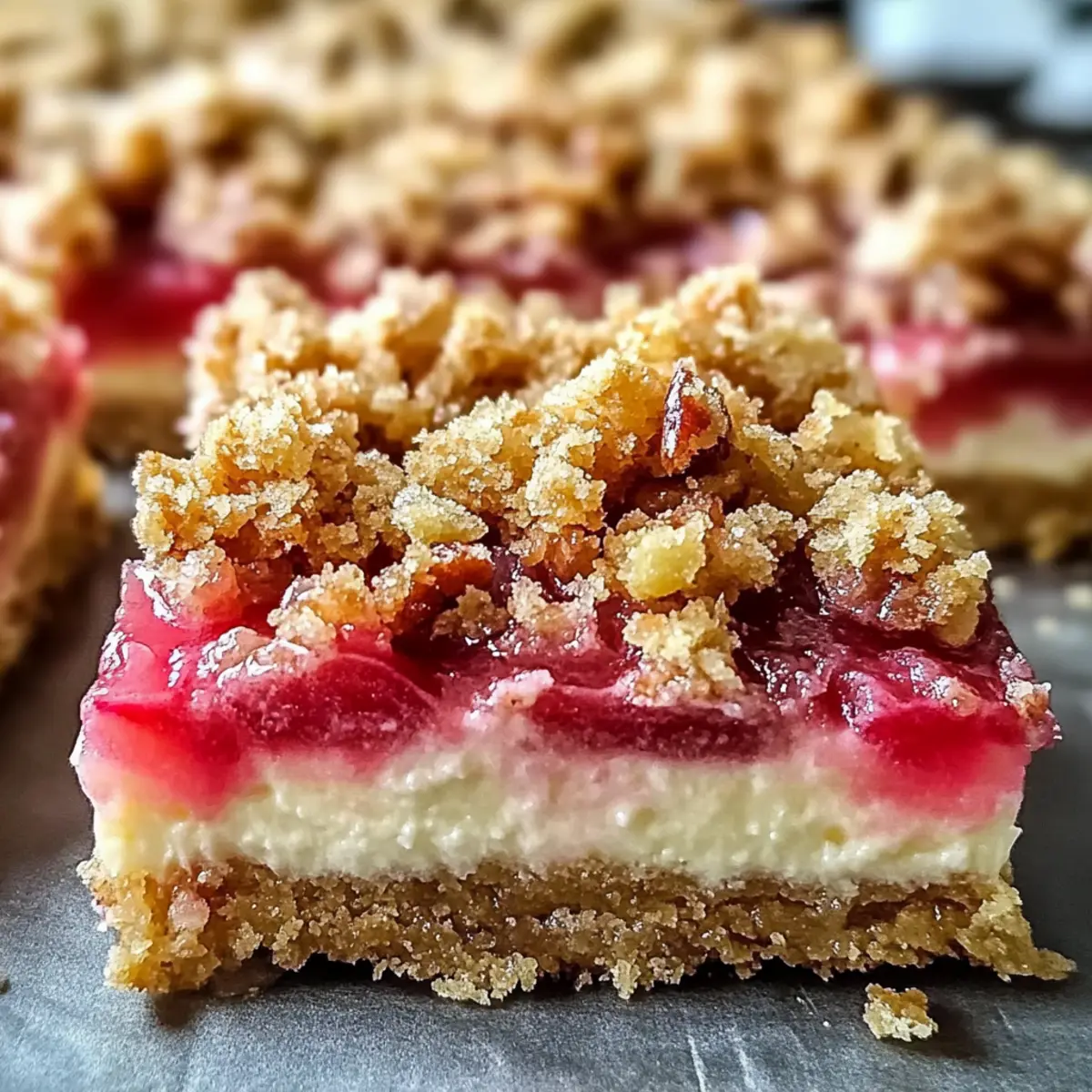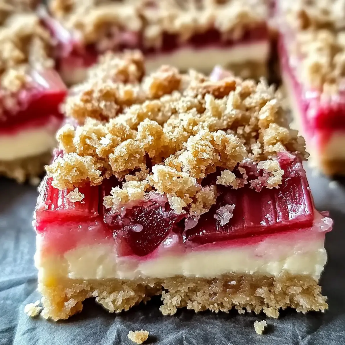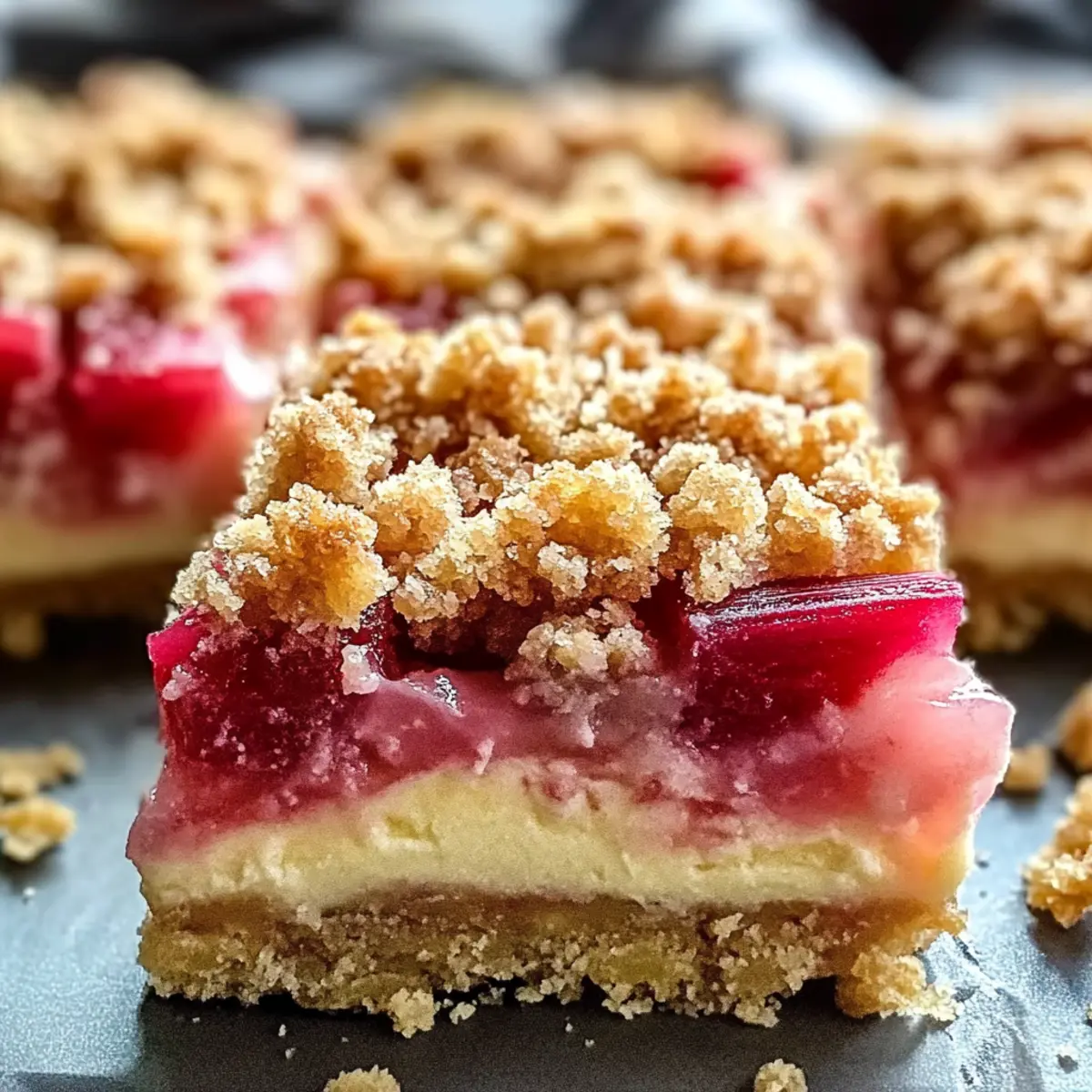 Delicious Creamy Rhubarb Cheesecake Crumble Bars to Savor