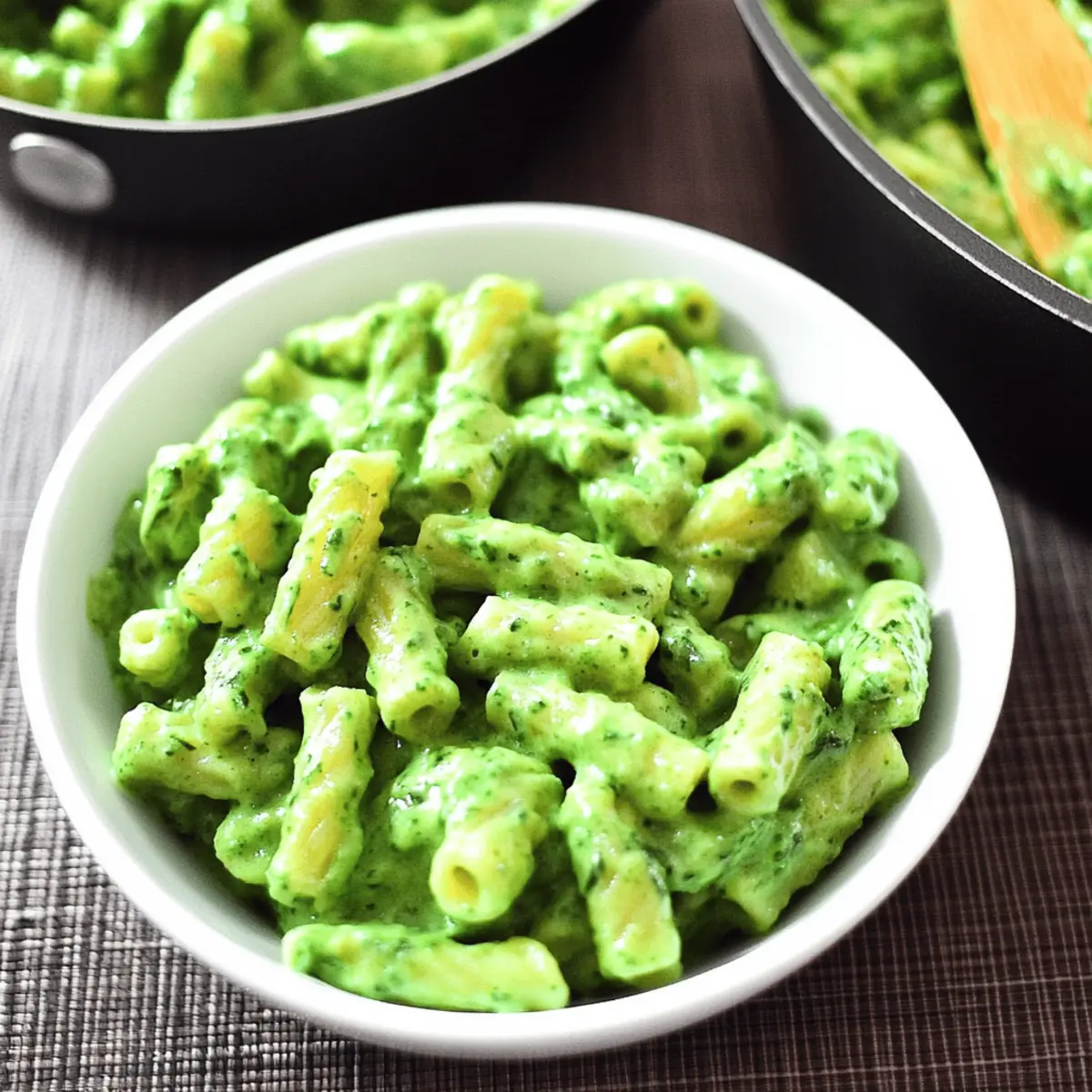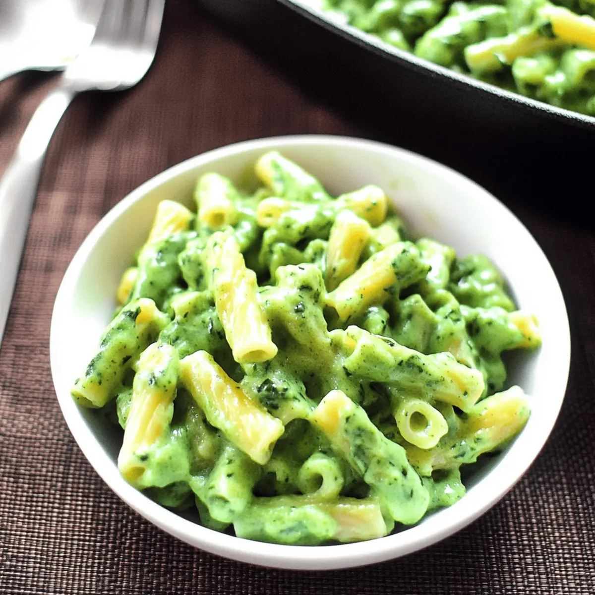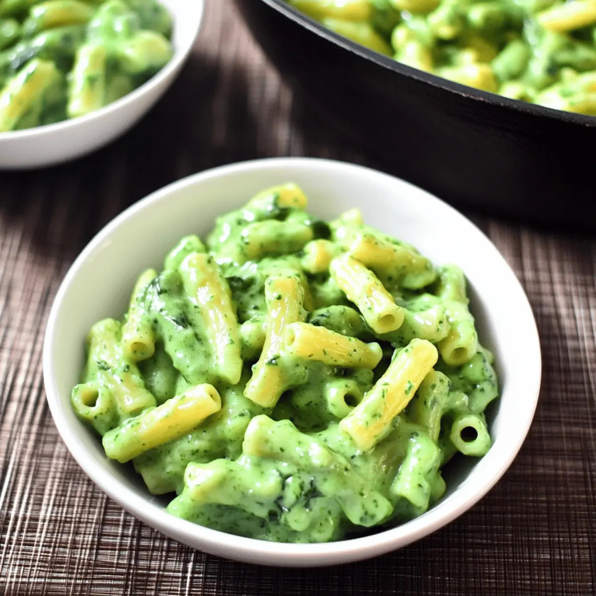 Add the cooked macaroni to the creamy spinach sauce, tossing gently to coat the pasta evenly. If the sauce is too thick, incorporate a splash of the reserved pasta water to achieve your desired consistency. Serve warm, enjoying the comforting flavors and vibrant colors of this delightful dish.