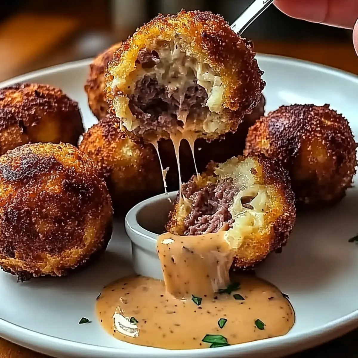 Crispy Reuben Balls with Spicy Thousand Island Dipping Sauce