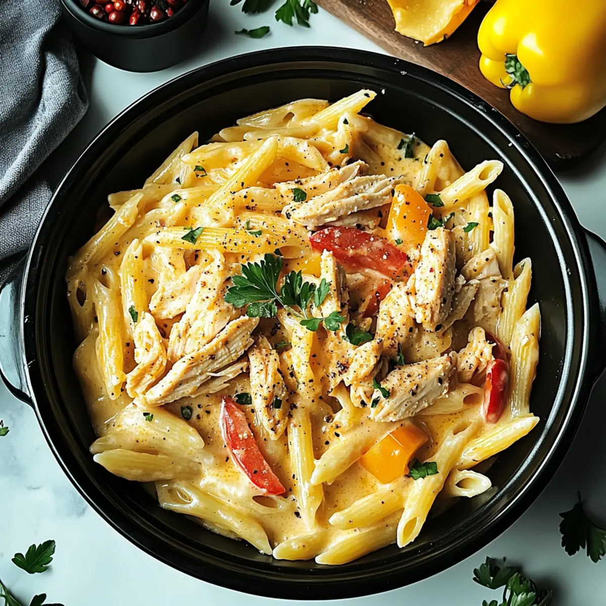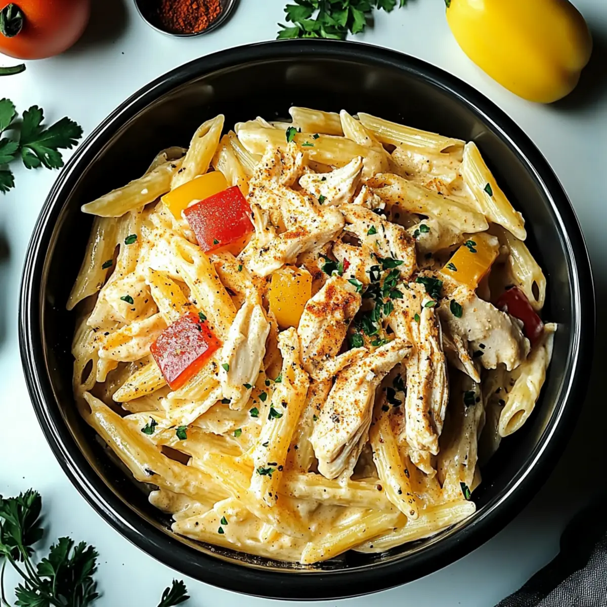To finish, ladle the Crock Pot Creamy Cajun Chicken Pasta into bowls, garnishing each portion with freshly chopped parsley for a vibrant touch. Serve hot, alongside crusty bread or a refreshing salad, making it a perfect choice for a comforting family dinner.