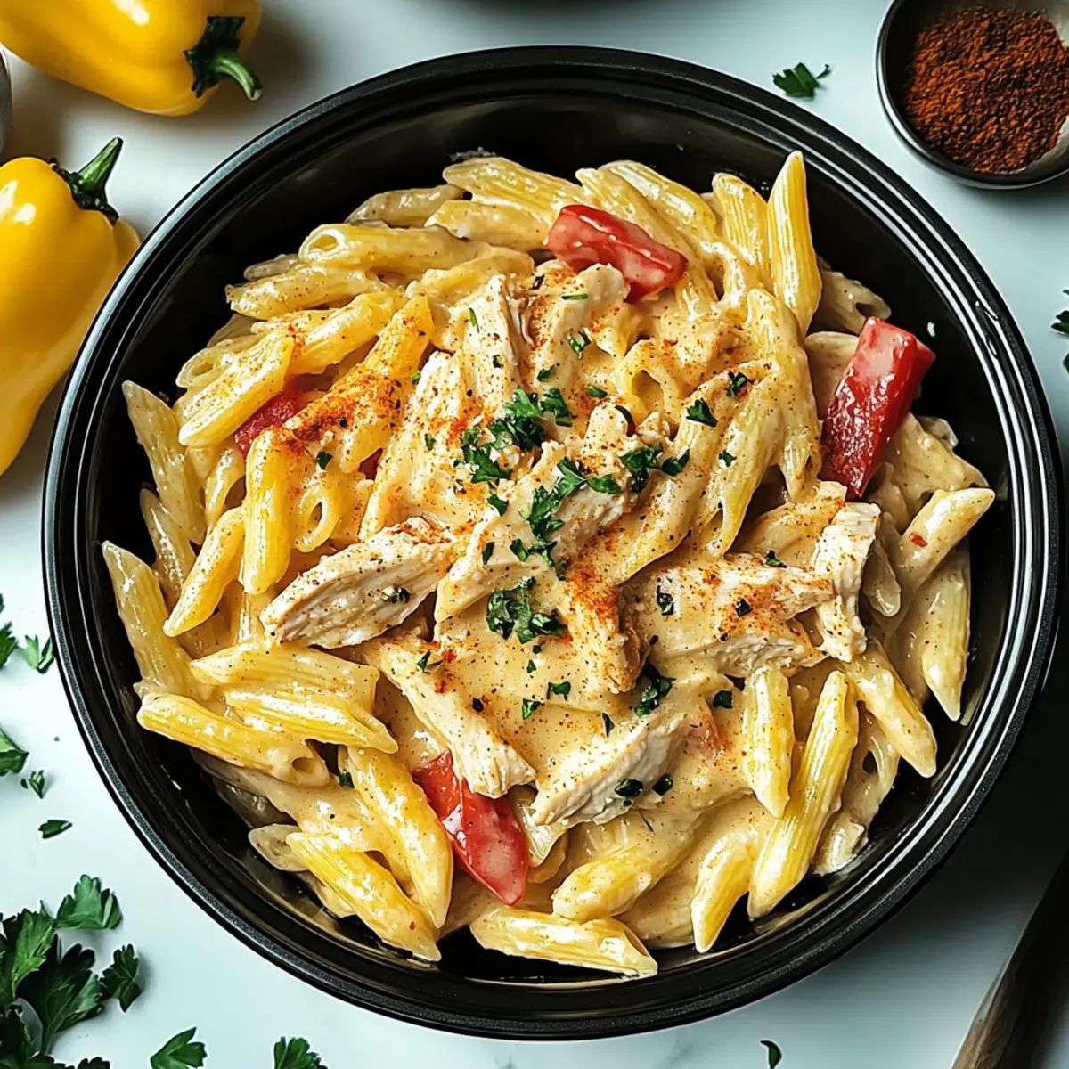 Pasta Shape Change: Swap out penne for your favorite pasta shape, like farfalle or fusilli, for a fun presentation twist.