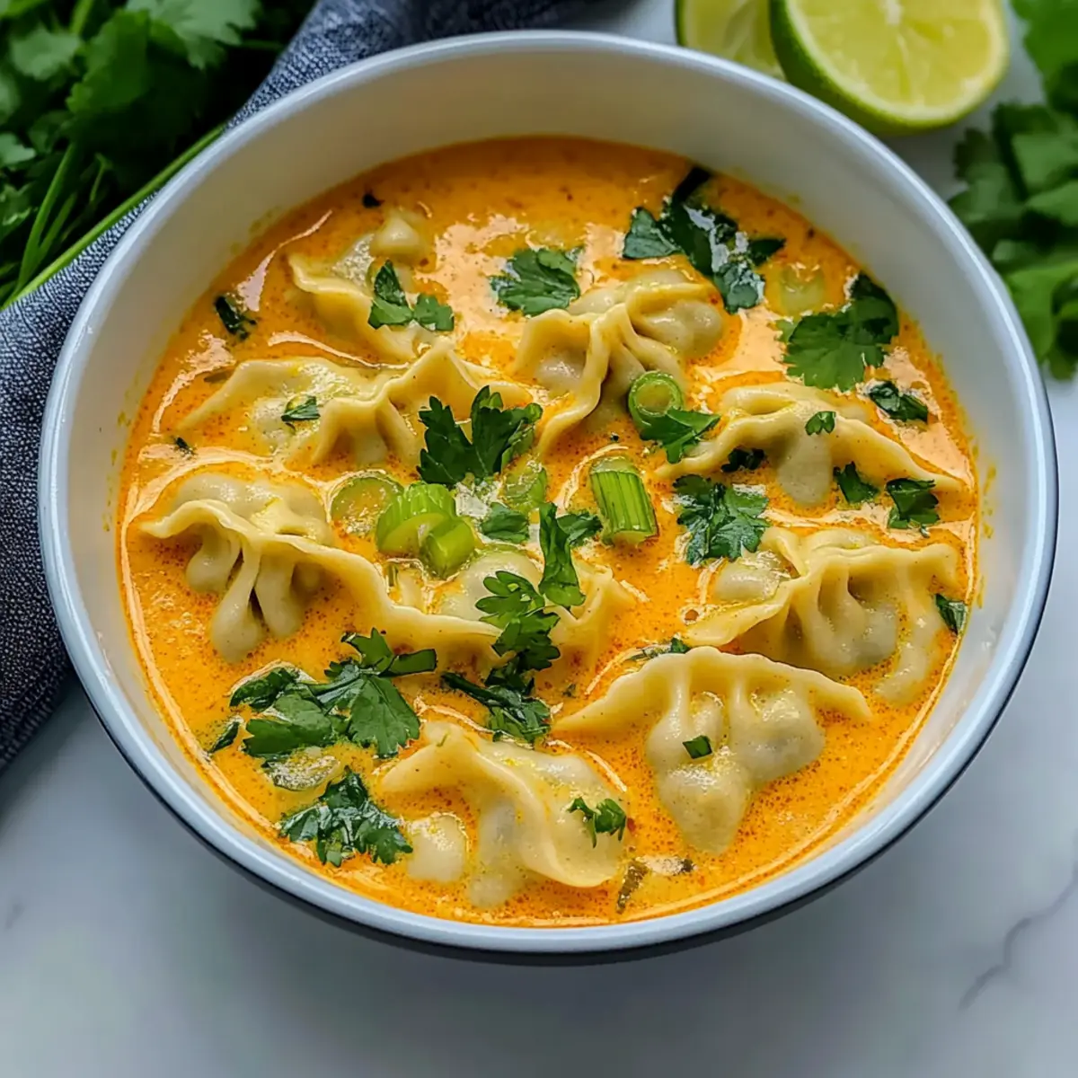 A hearty Delicious Curry Dumpling Soup with coconut milk, perfect for chilly evenings and quick prep.