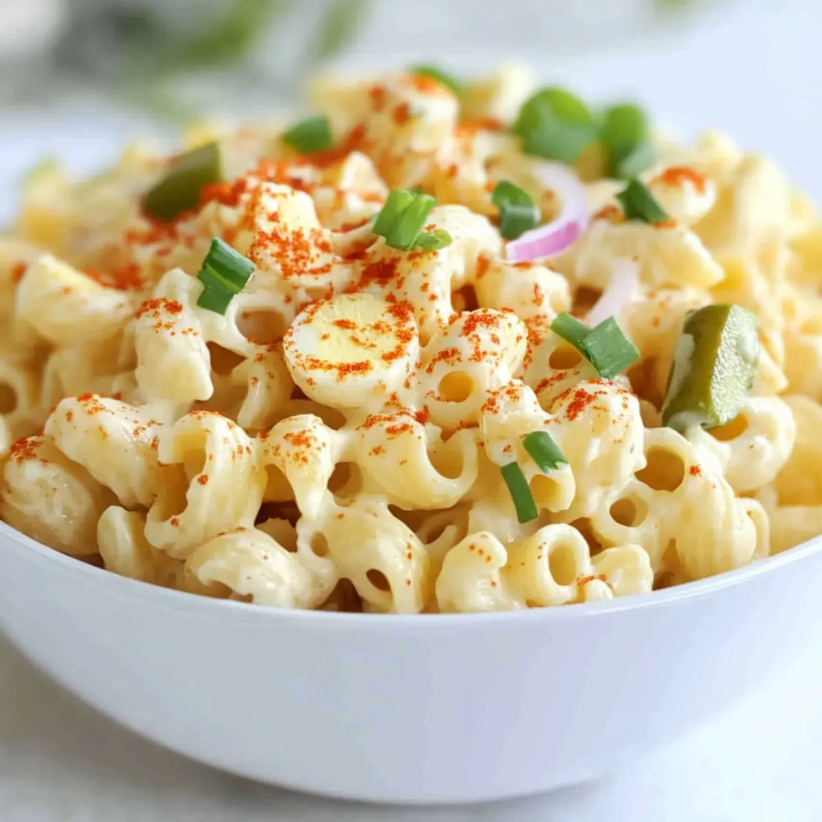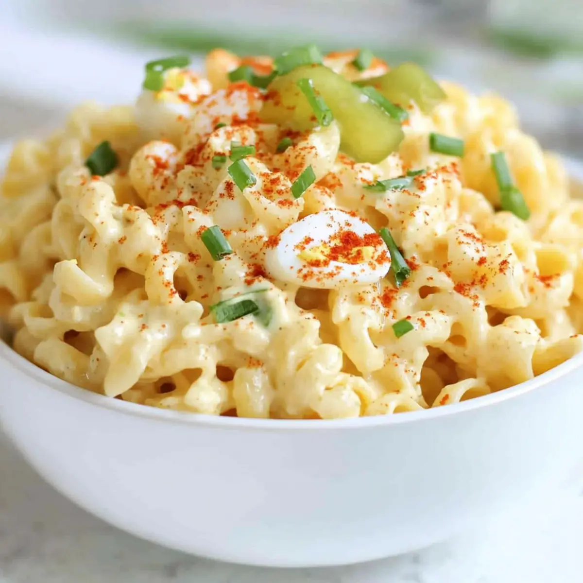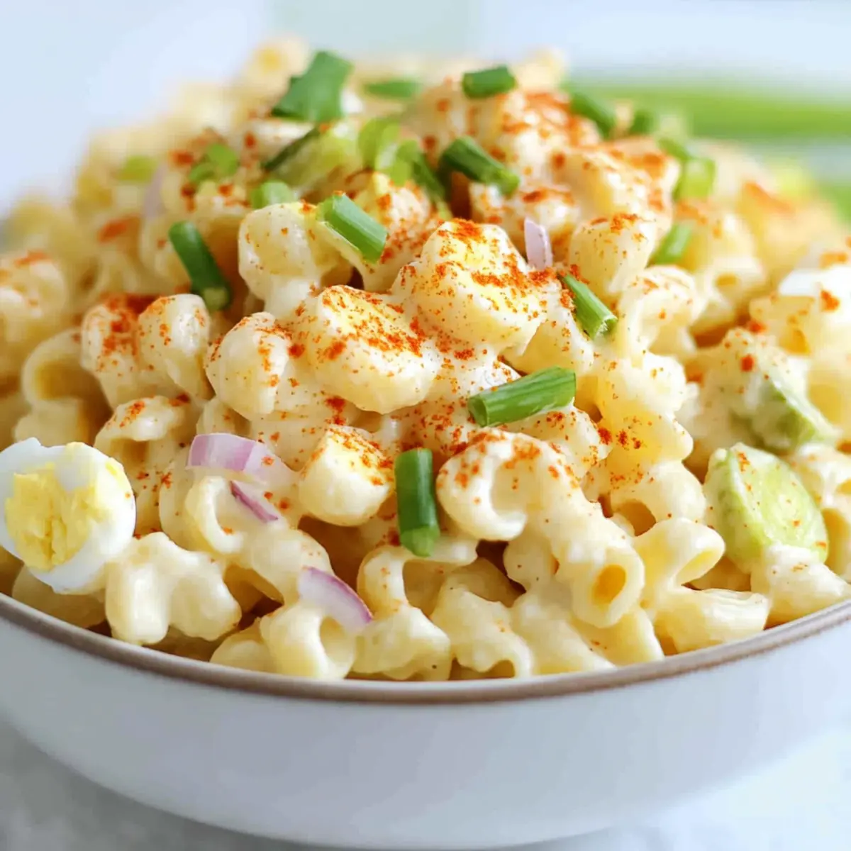 Texture Play: Consider adding diced celery or crispy bacon for a crunch factor. This creates delightful layers in your Deviled Egg Pasta Salad.
