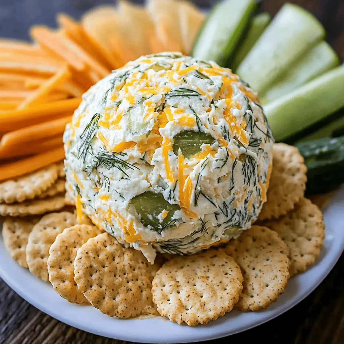 For a delightful presentation, serve your Dill Pickle Cheese Ball with an assortment of crackers, fresh vegetables, or pretzel chips. The vibrant colors and enticing aroma will surely attract your guests, inviting them to indulge in this creamy, tangy appetizer. Gather everyone around and watch them enjoy this delicious addition to your gathering, making it a hit at any occasion.
