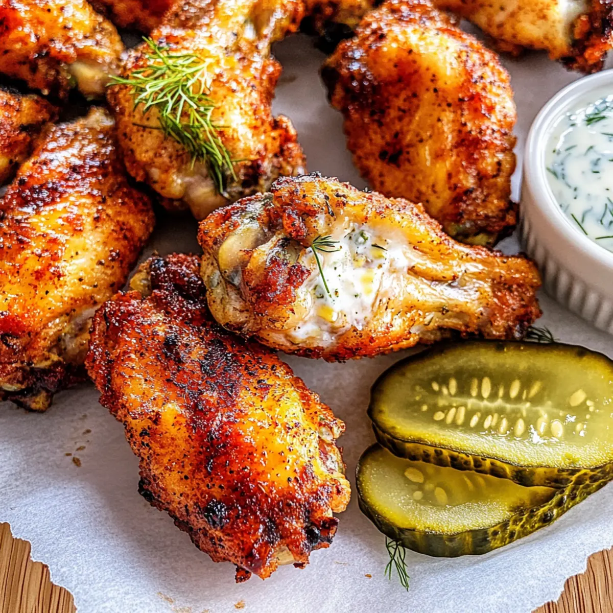 Lemon Zest Kick: Sprinkle some fresh lemon zest on the wings just before serving for a zesty brightness. It’s the perfect way to elevate the tanginess of dill while adding a refreshing pop!