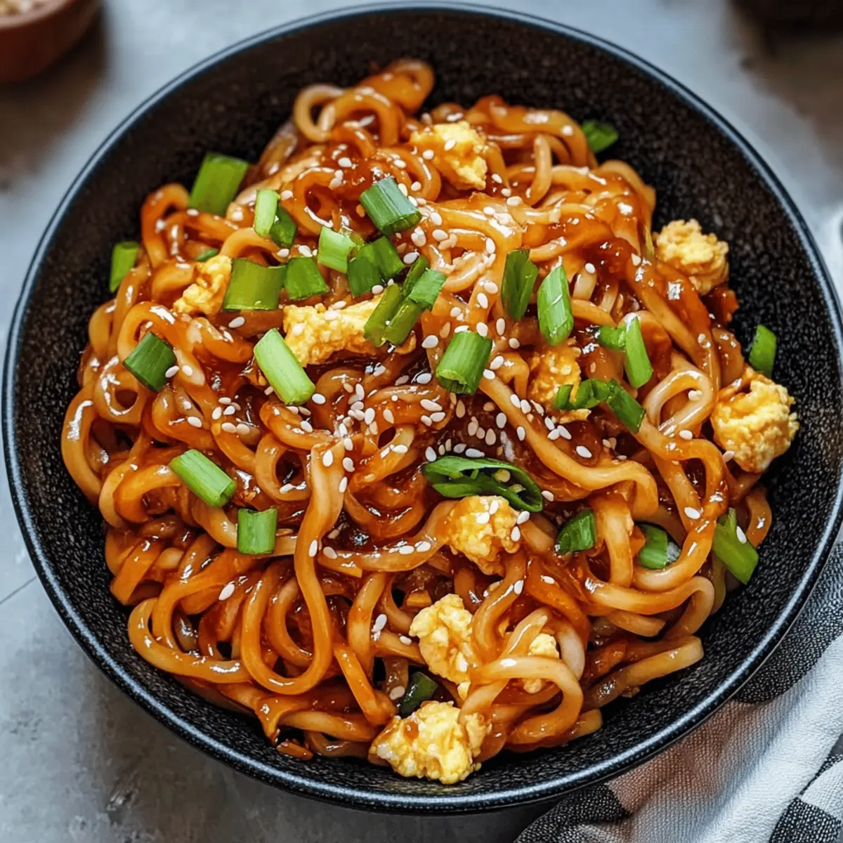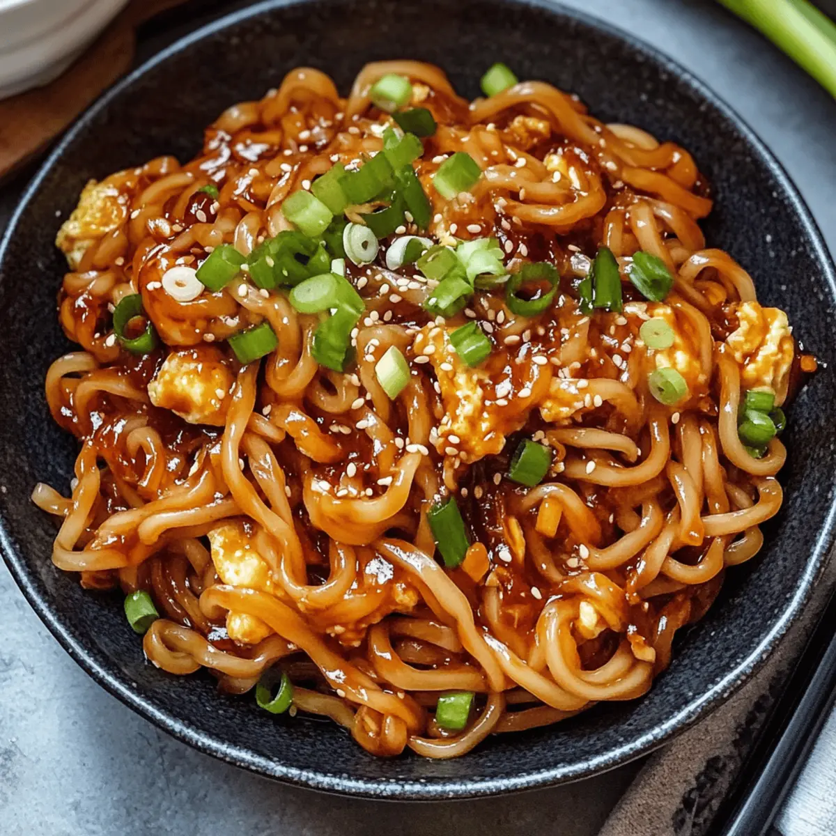 Once well mixed, remove the skillet from heat and transfer the Dragon Noodles to serving plates or bowls. Top them with chopped green onions and a sprinkle of sesame seeds for added flavor and crunch. Serve hot and enjoy the delightful fusion of flavors that make these Dragon Noodles a quick and satisfying meal!