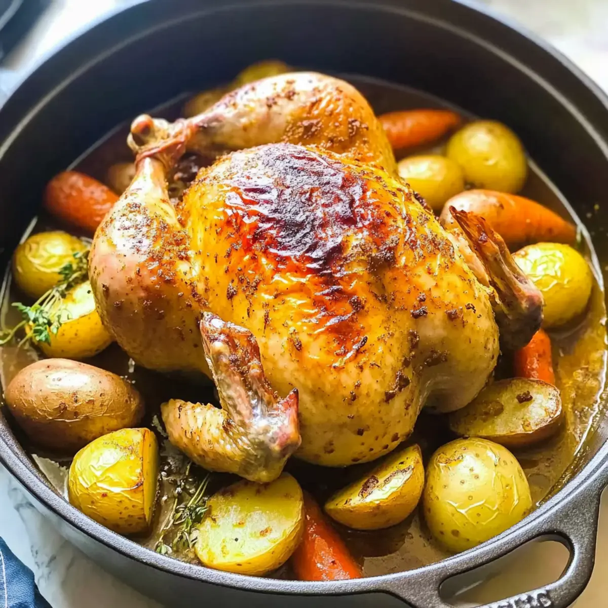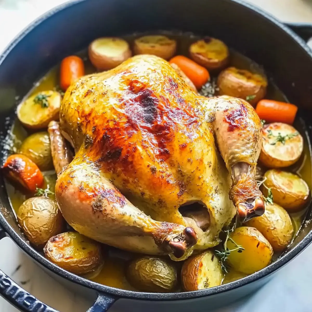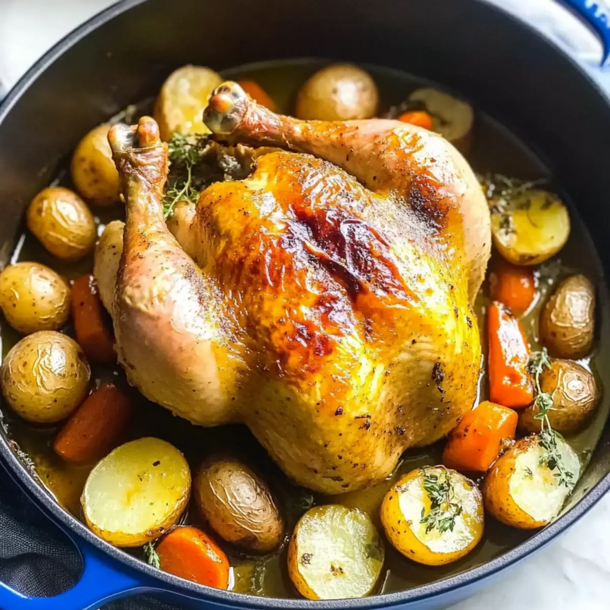 Succulent Dutch Oven Whole Chicken with Crispy Skin Delight