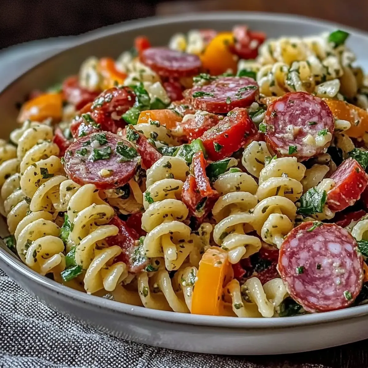 Very! This pasta salad is versatile; you can easily make it vegetarian by replacing salami with marinated artichokes or roasted mushrooms. For a gluten-free option, just use gluten-free rotini. It’s also a great option for gatherings as it caters to various dietary preferences, making shareable meals delightful and inclusive.