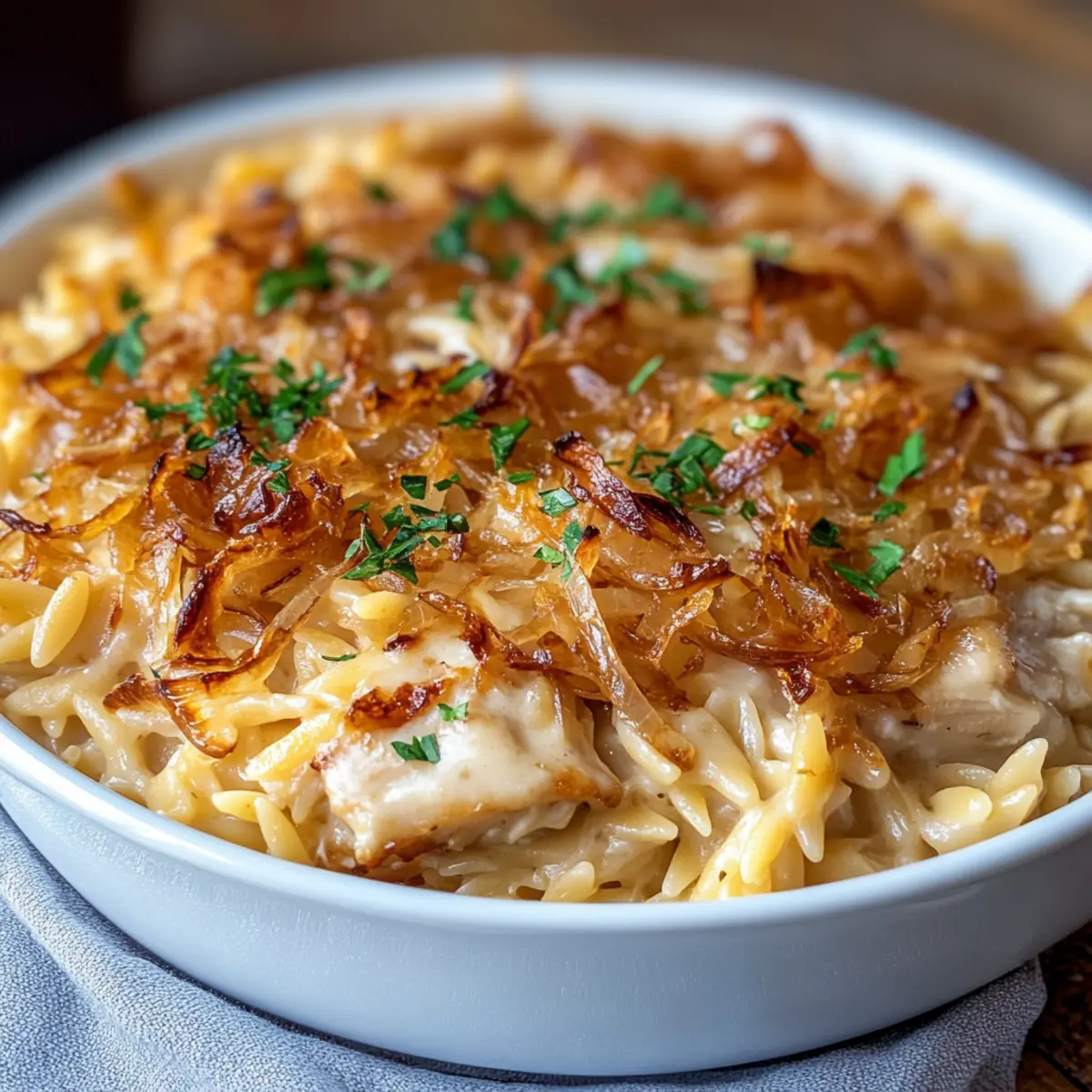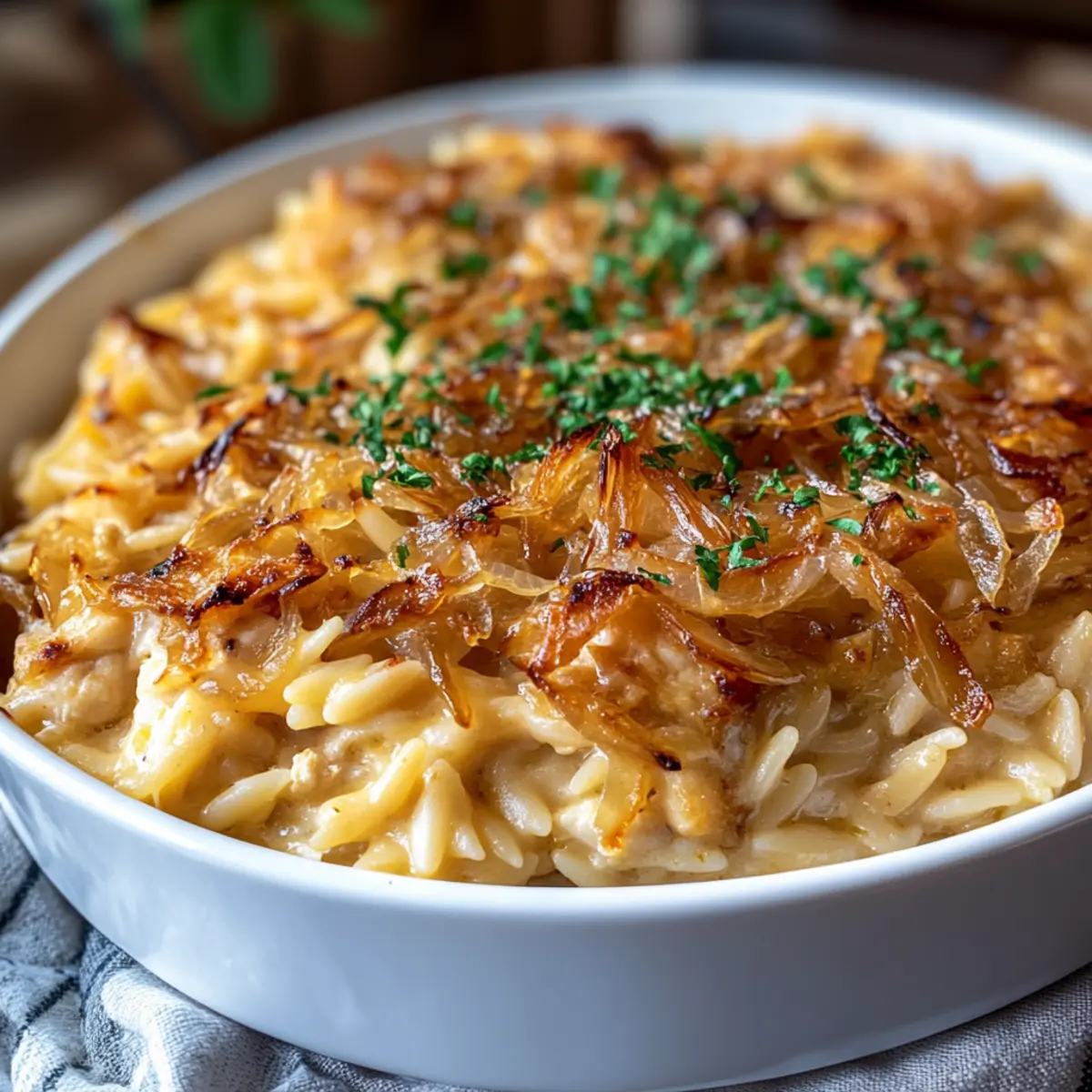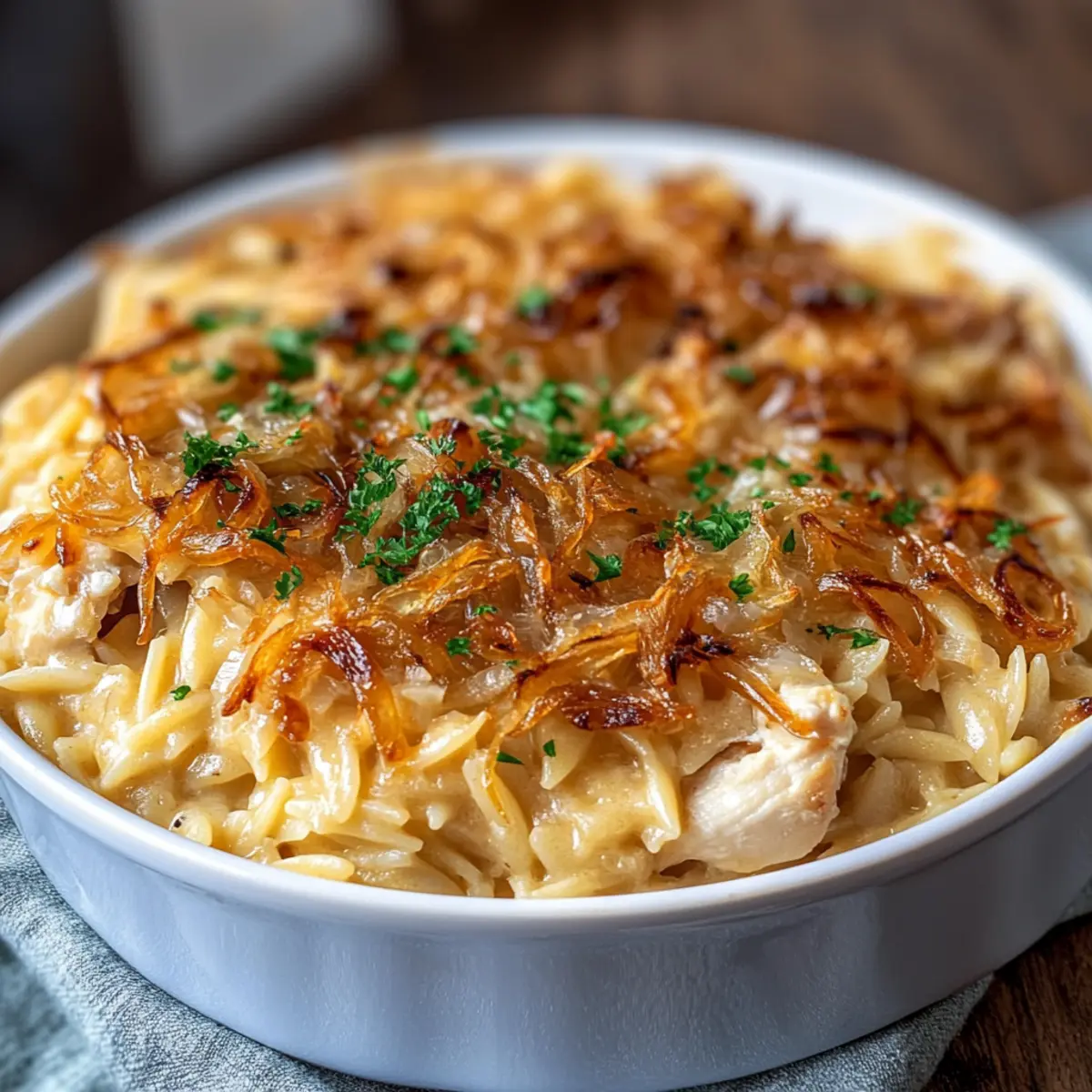 Savory French Onion Chicken Orzo Casserole for Cozy Nights