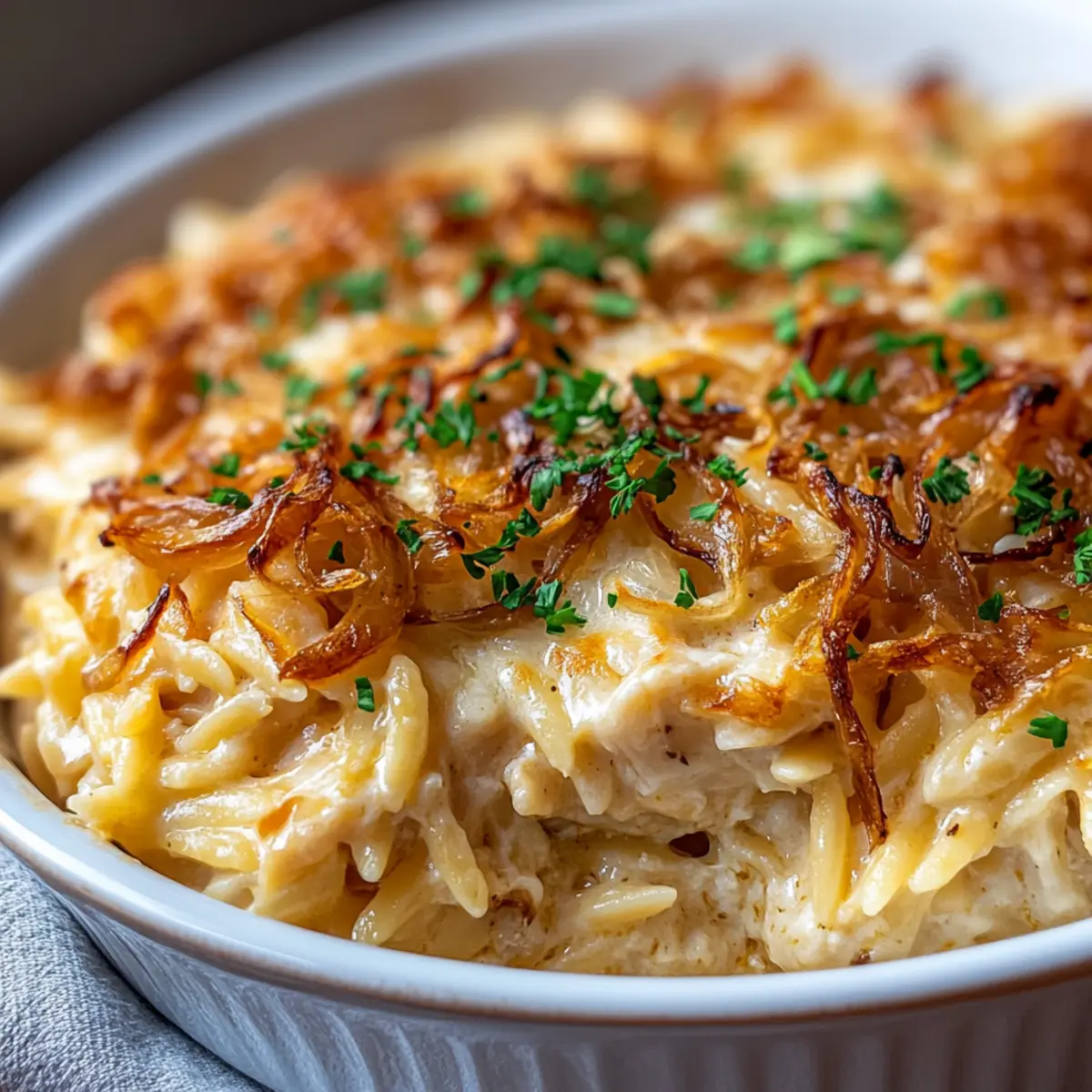 Savory French Onion Chicken Orzo Casserole for Cozy Nights