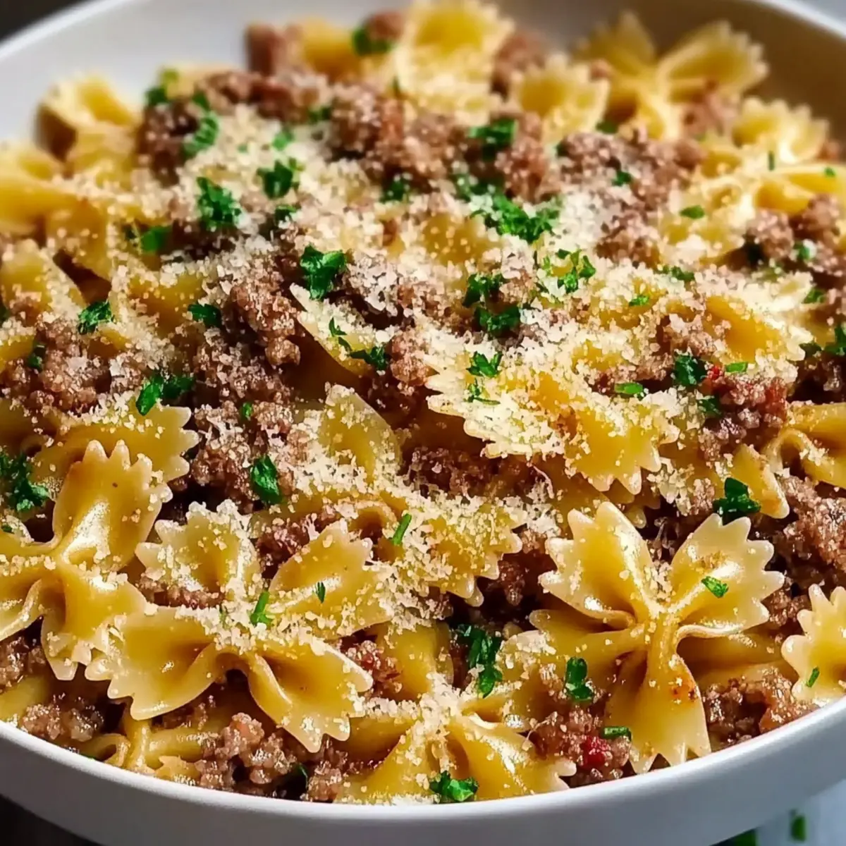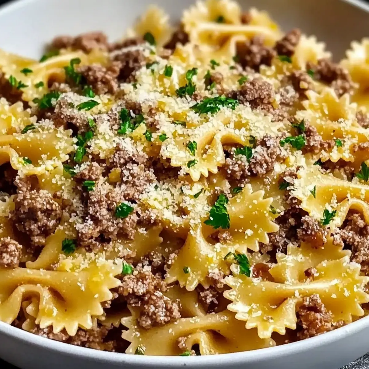 Irresistible Garlic Butter Bowtie Pasta with Ground Beef Delight