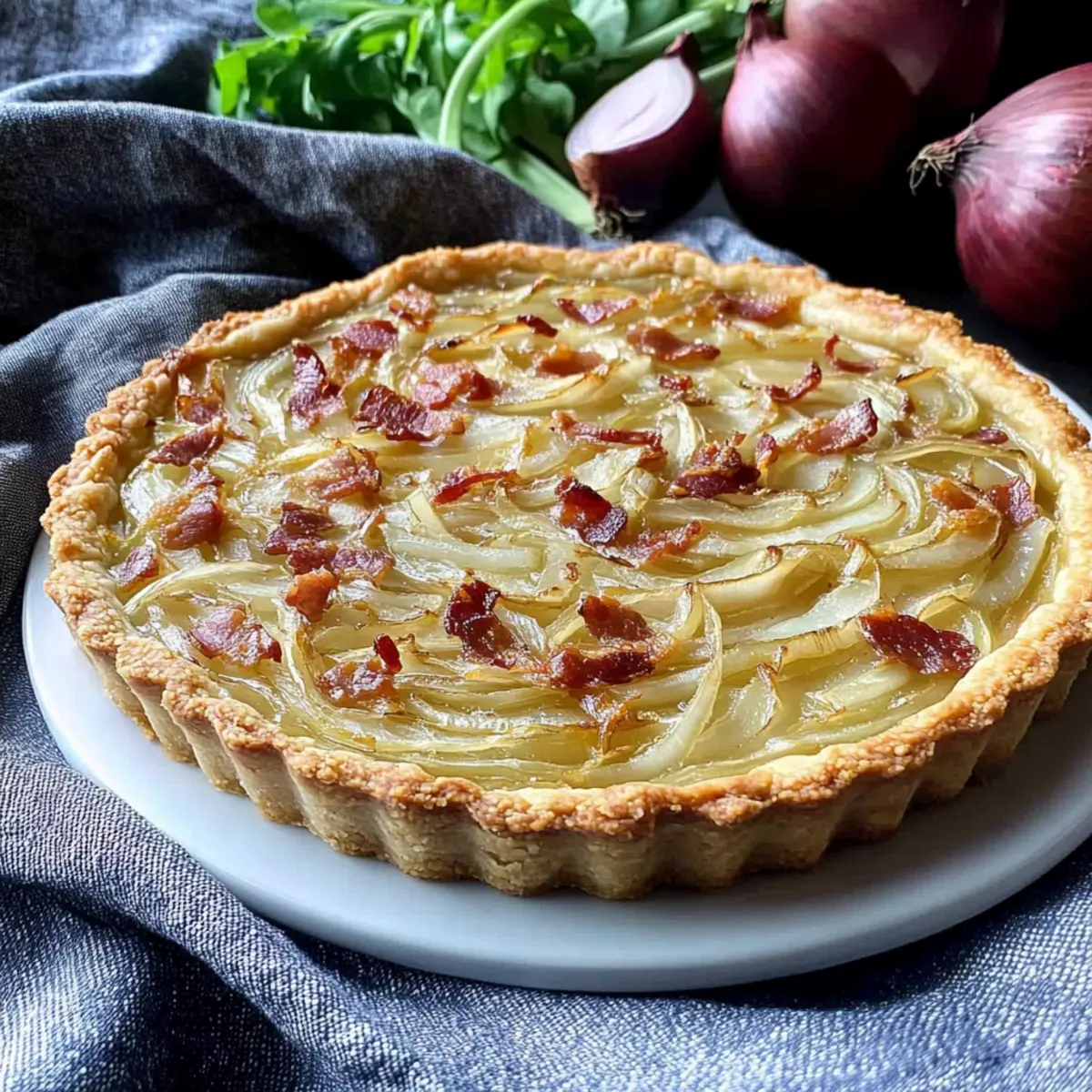 As the leaves turn and a gentle crisp fills the air, I find myself craving the hearty warmth of comfort food, and nothing fits the bill quite like a Savory German Onion Tart (Zwiebelkuchen). This delightful dish transforms humble onions into a savory masterpiece, nestled in a buttery, flaky crust that’s simply irresistible. The combination of sweet caramelized onions, crispy bacon, and creamy crème fraîche makes this tart a perfect centerpiece for gatherings or a cozy night in. Not only is this recipe a breeze to whip up, but it also promises to impress anyone lucky enough to share a slice. Are you ready to fill your kitchen with the enticing aroma of this autumnal favorite?