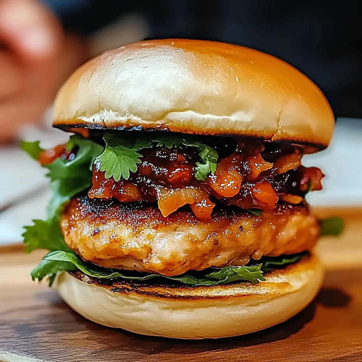 A fusion of flavors in Gochujang Chicken Burgers with Kimchi Jam, perfect for busy weeknights and BBQ gatherings.