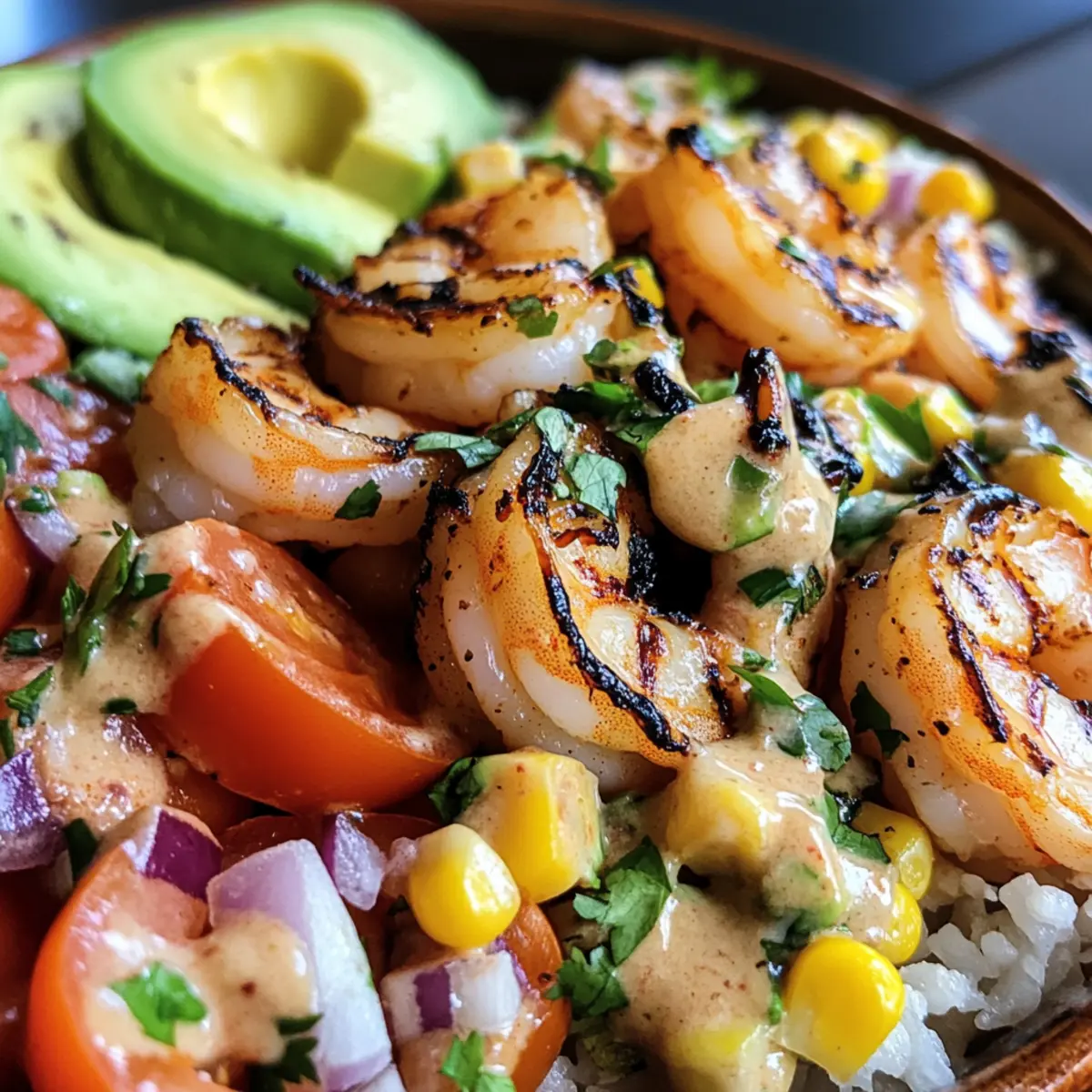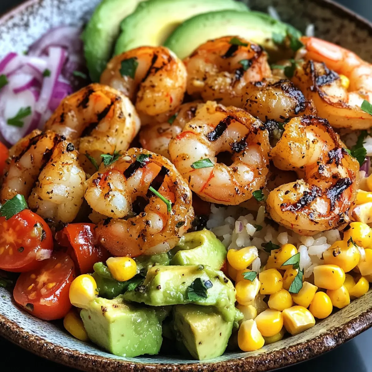 Vibrant Grilled Shrimp Bowl with Avocado and Zesty Salsa