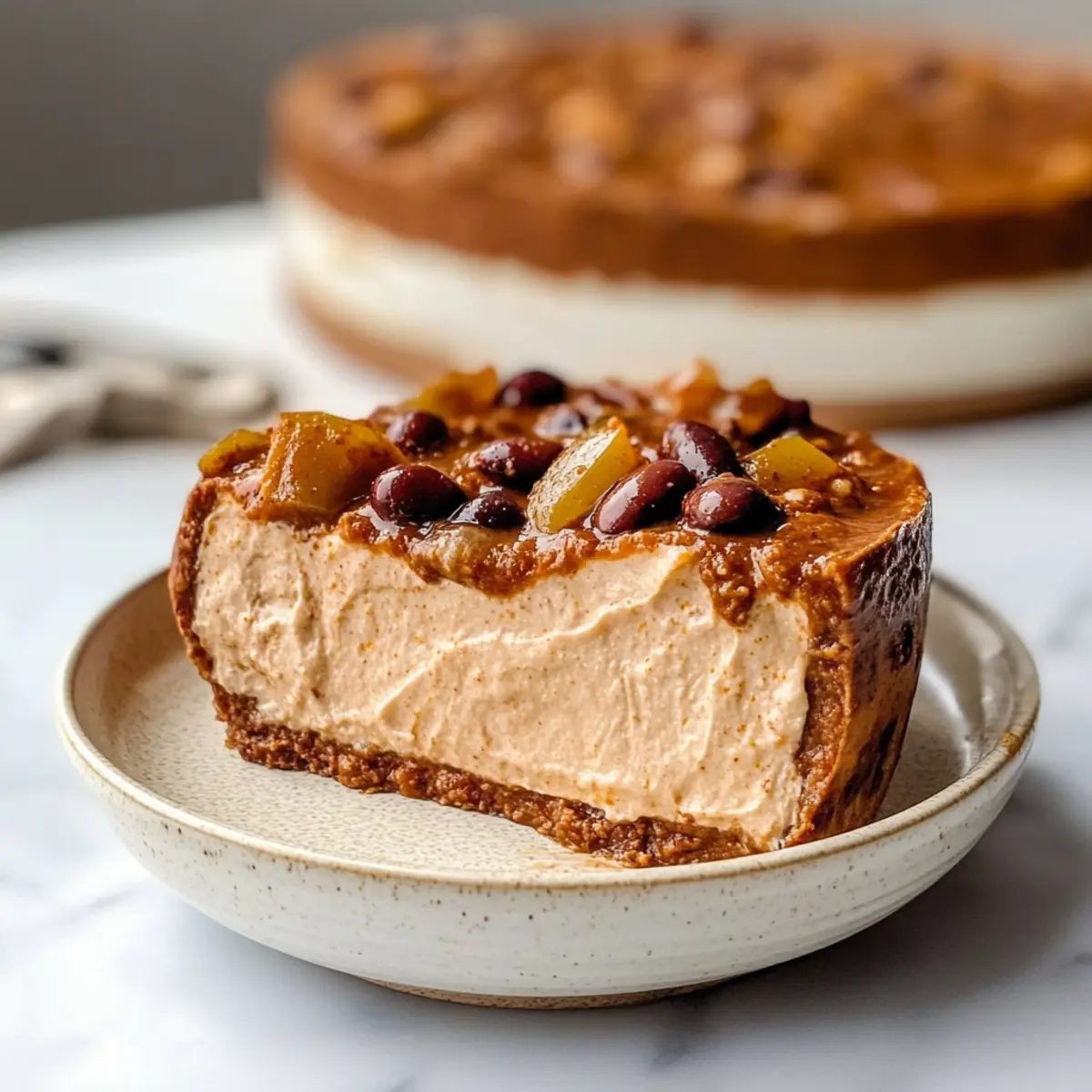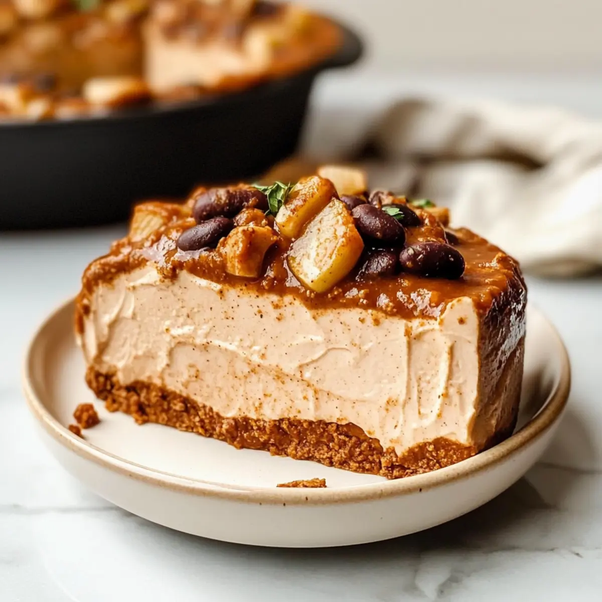 - Crush the Biscoff cookies into fine crumbs and mix with melted vegan butter. Press this mixture into the bottom of a springform pan to form the crust.